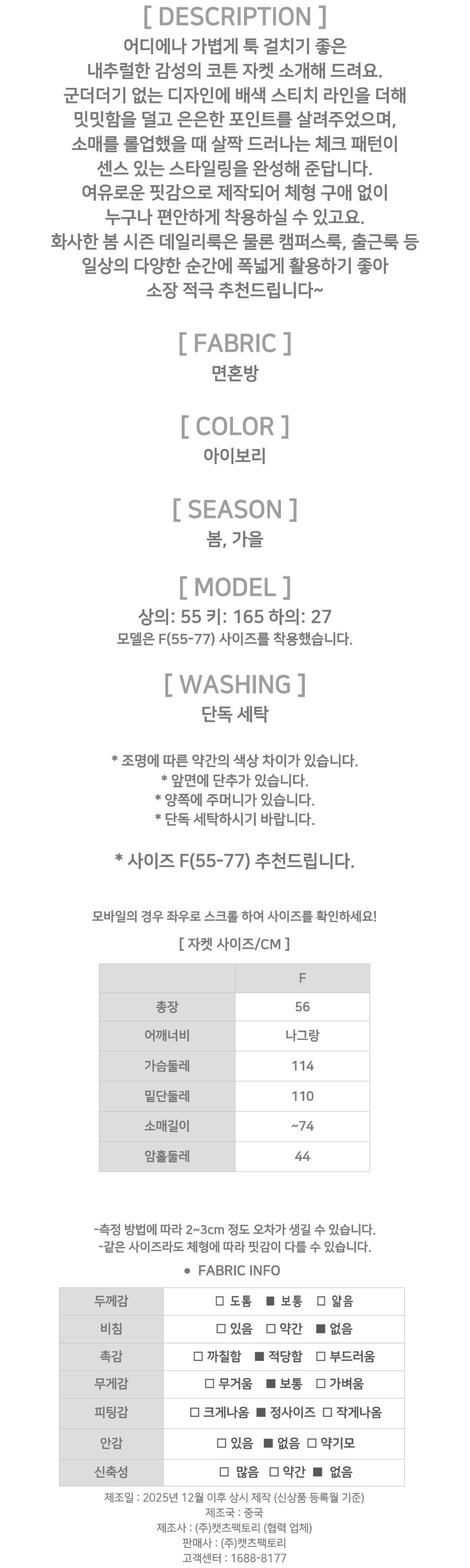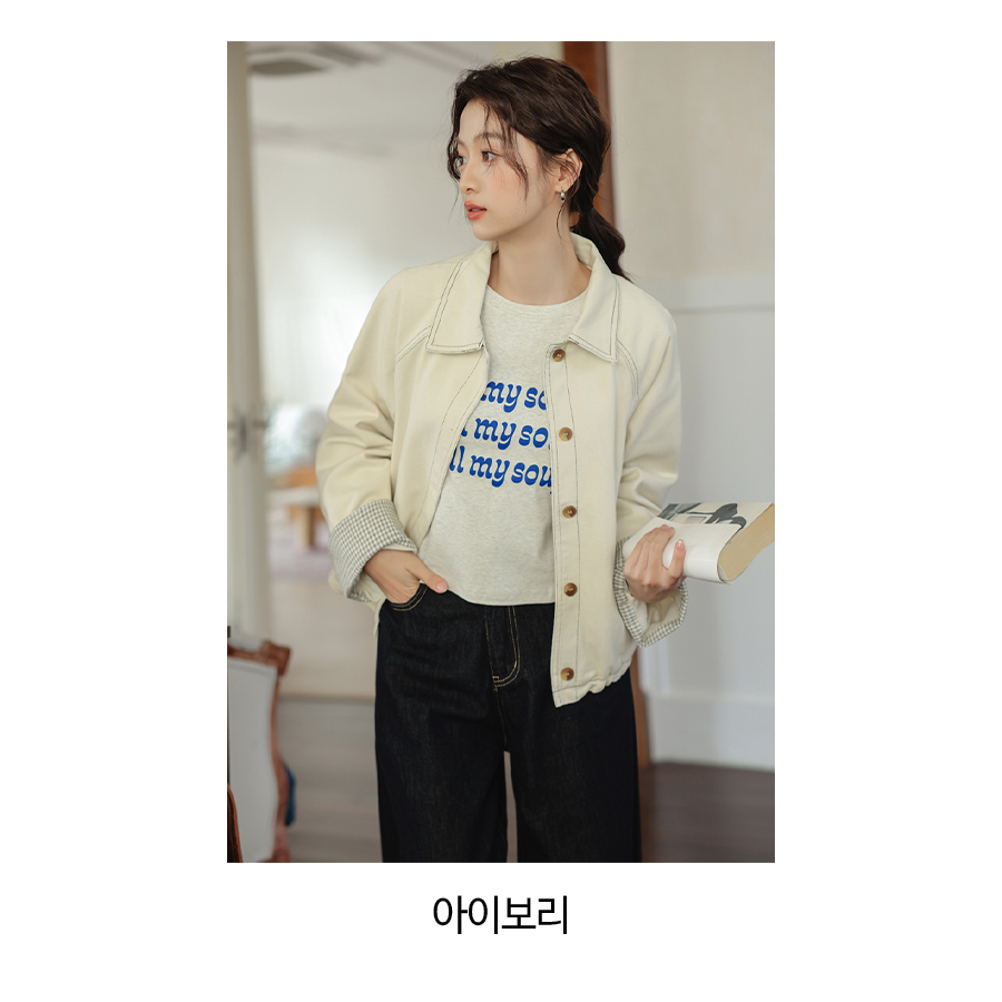 182446 캠퍼스 스티치 체크 롤업 코튼 자켓 42880