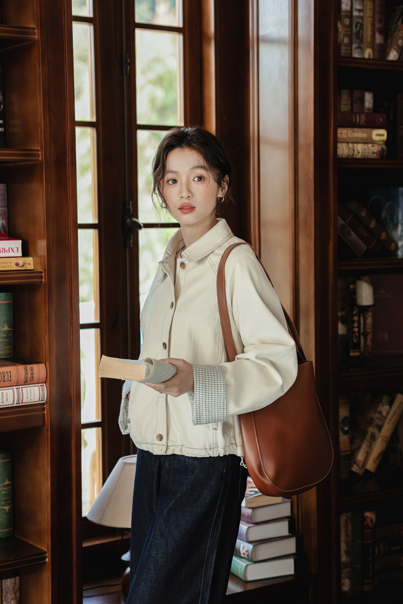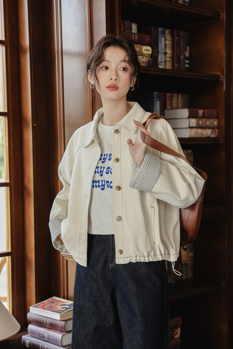캠퍼스 스티치 체크 롤업 코튼 자켓