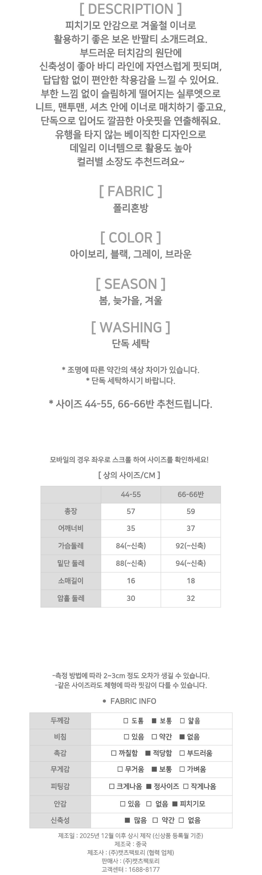 피치기모 베이직 보온 반팔티