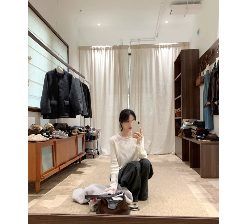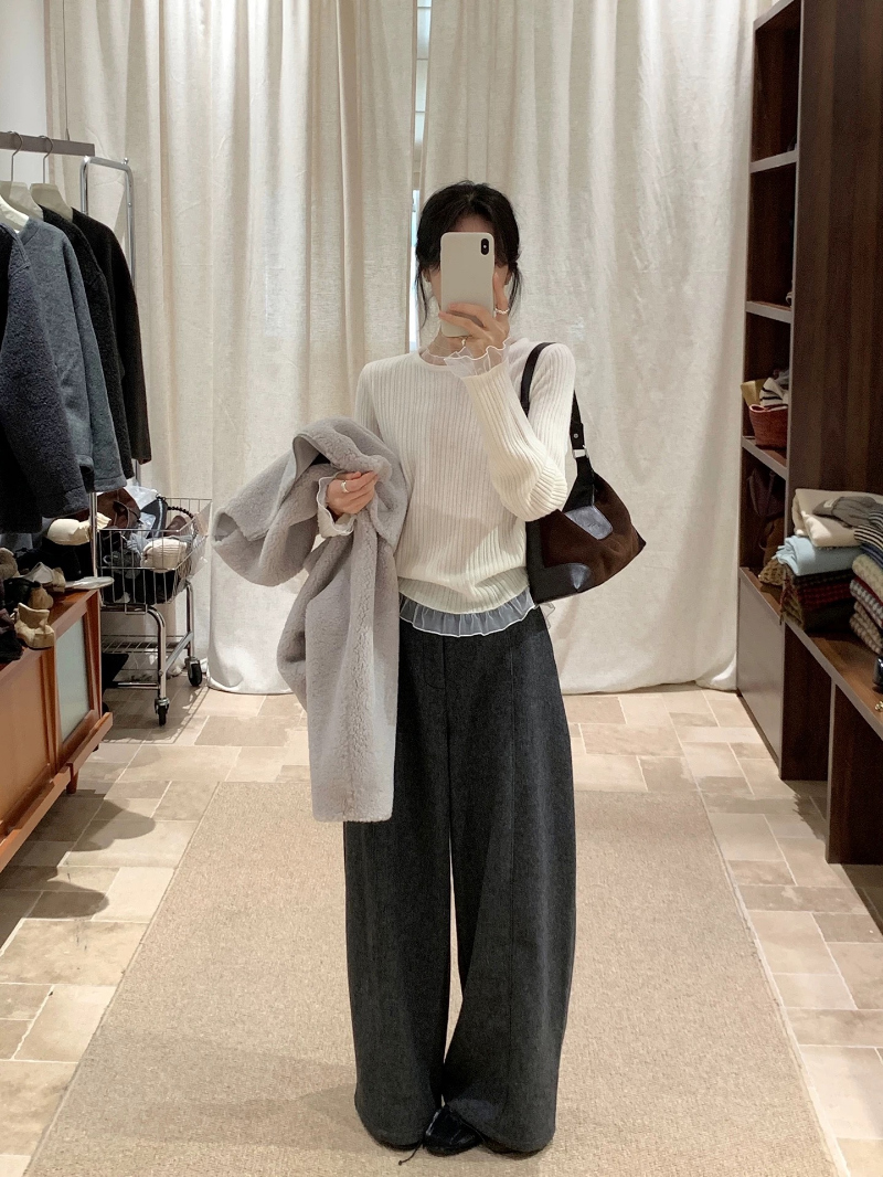 181698 여리핏 시스루 프릴 골지 티셔츠 23480