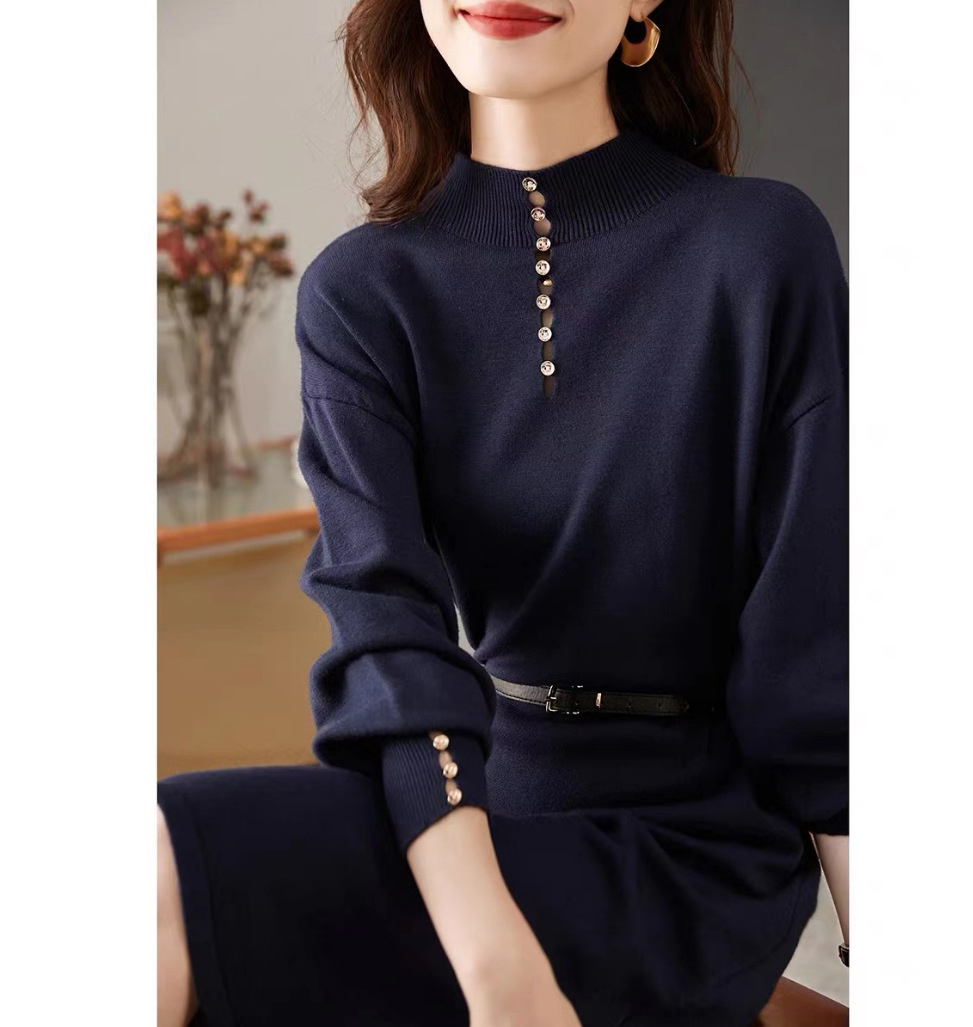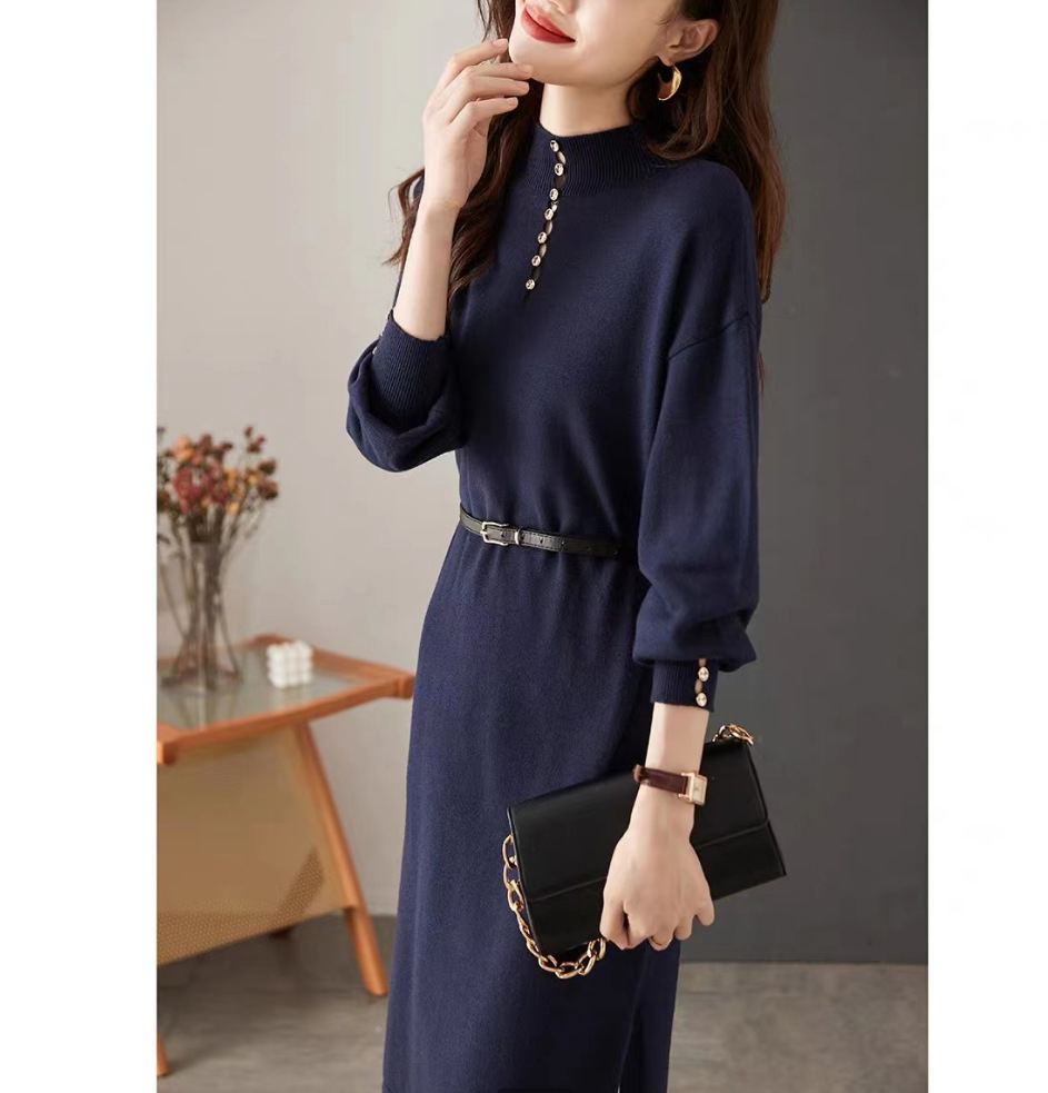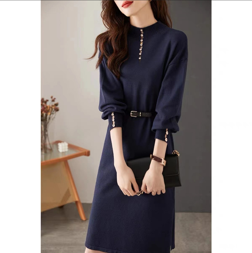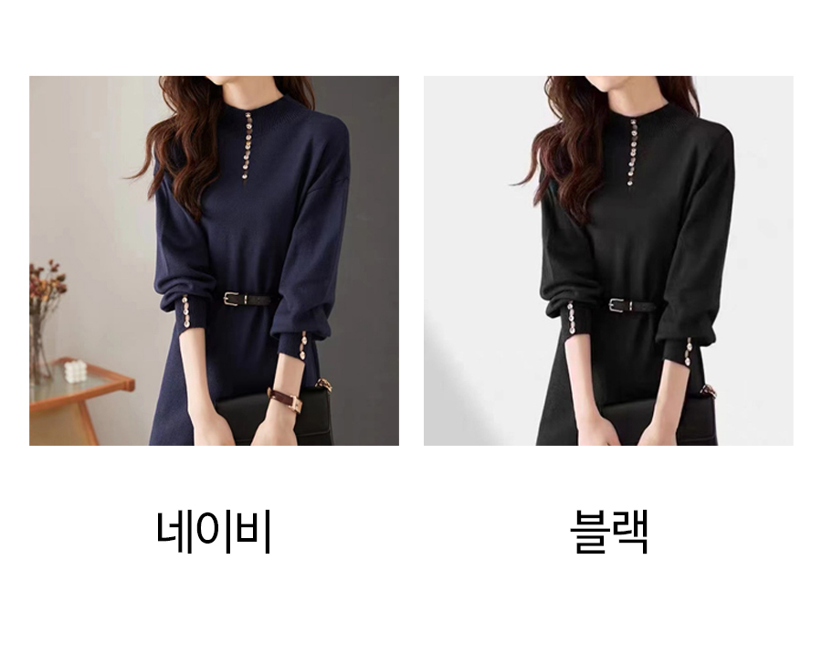 175333 반폴라 버튼 니트 원피스&벨트 39990