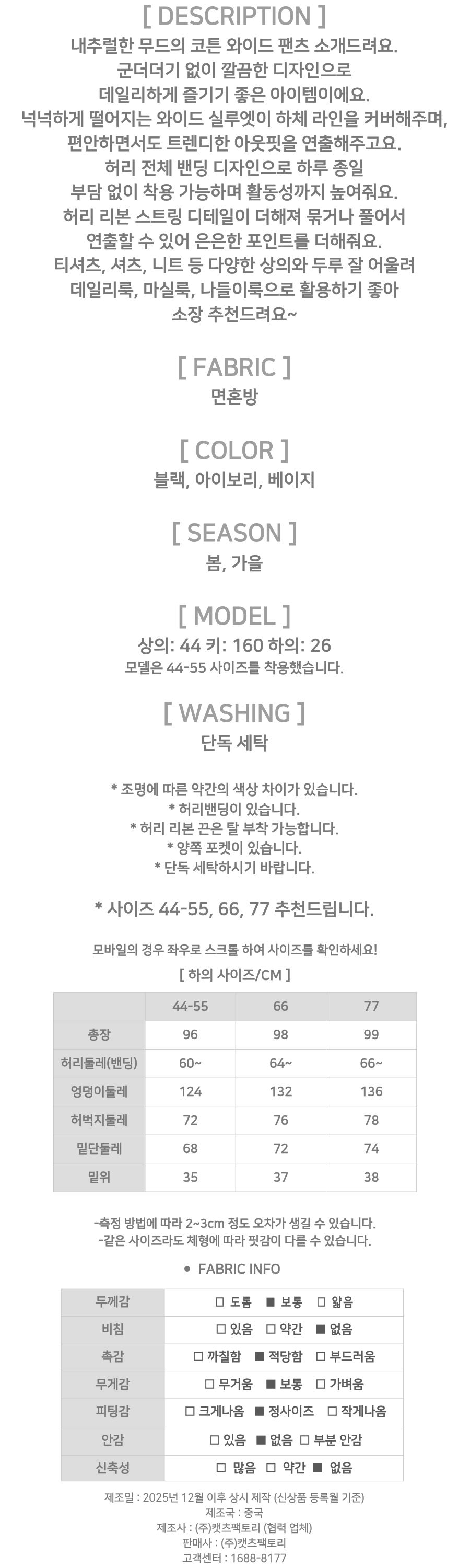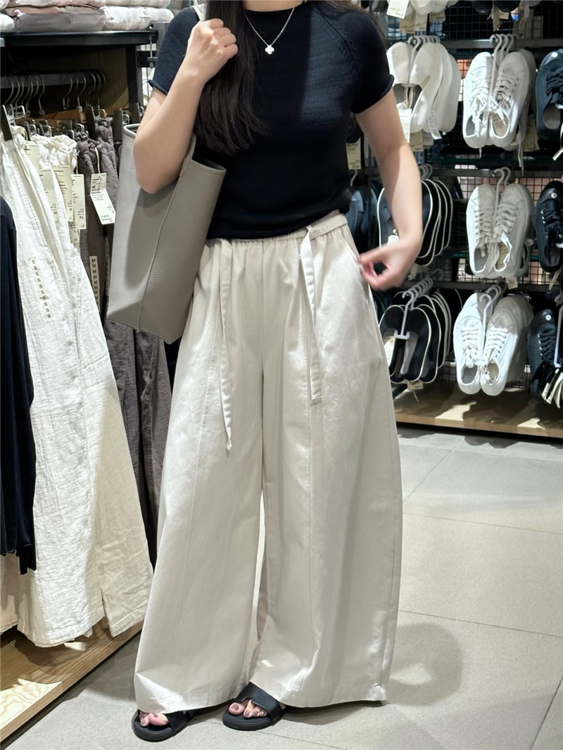 182305 내추럴 리본끈 코튼 와이드 팬츠 23480