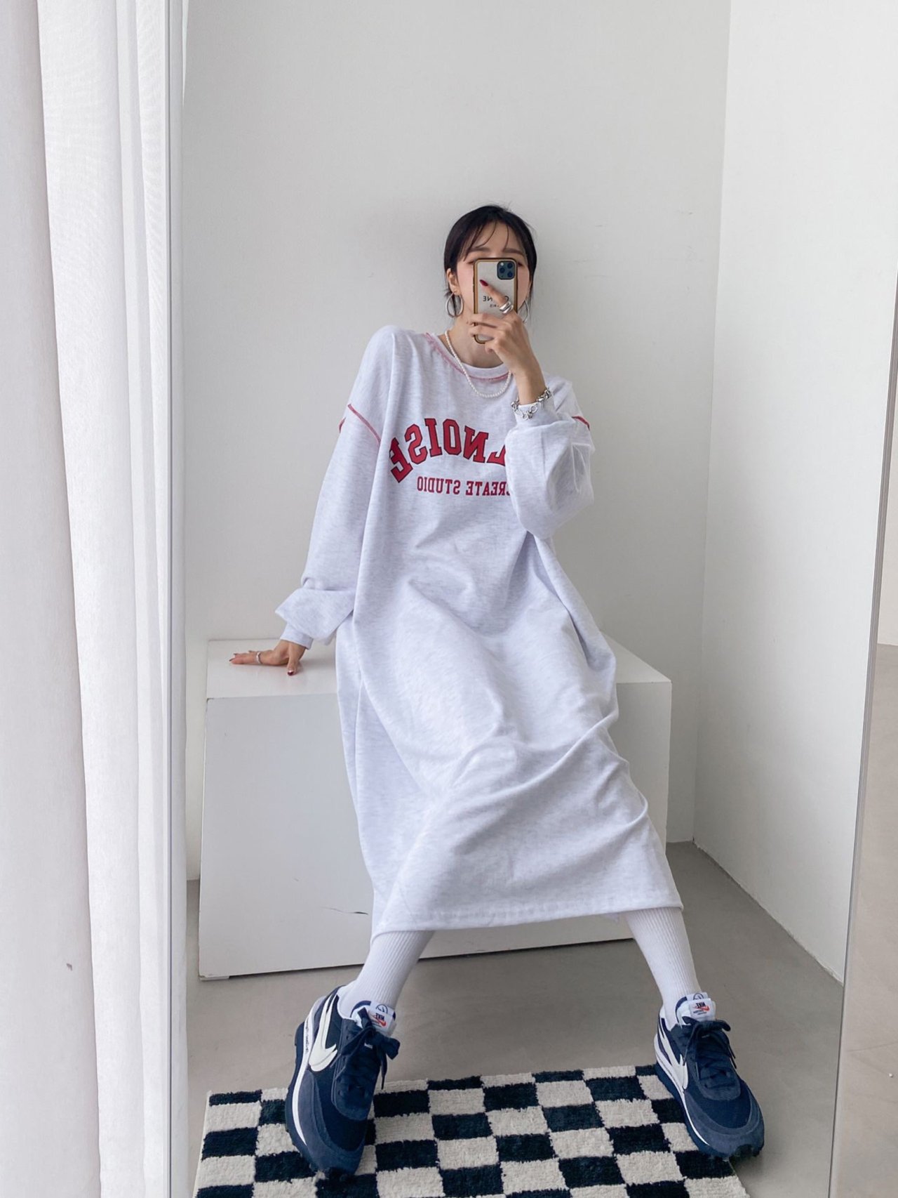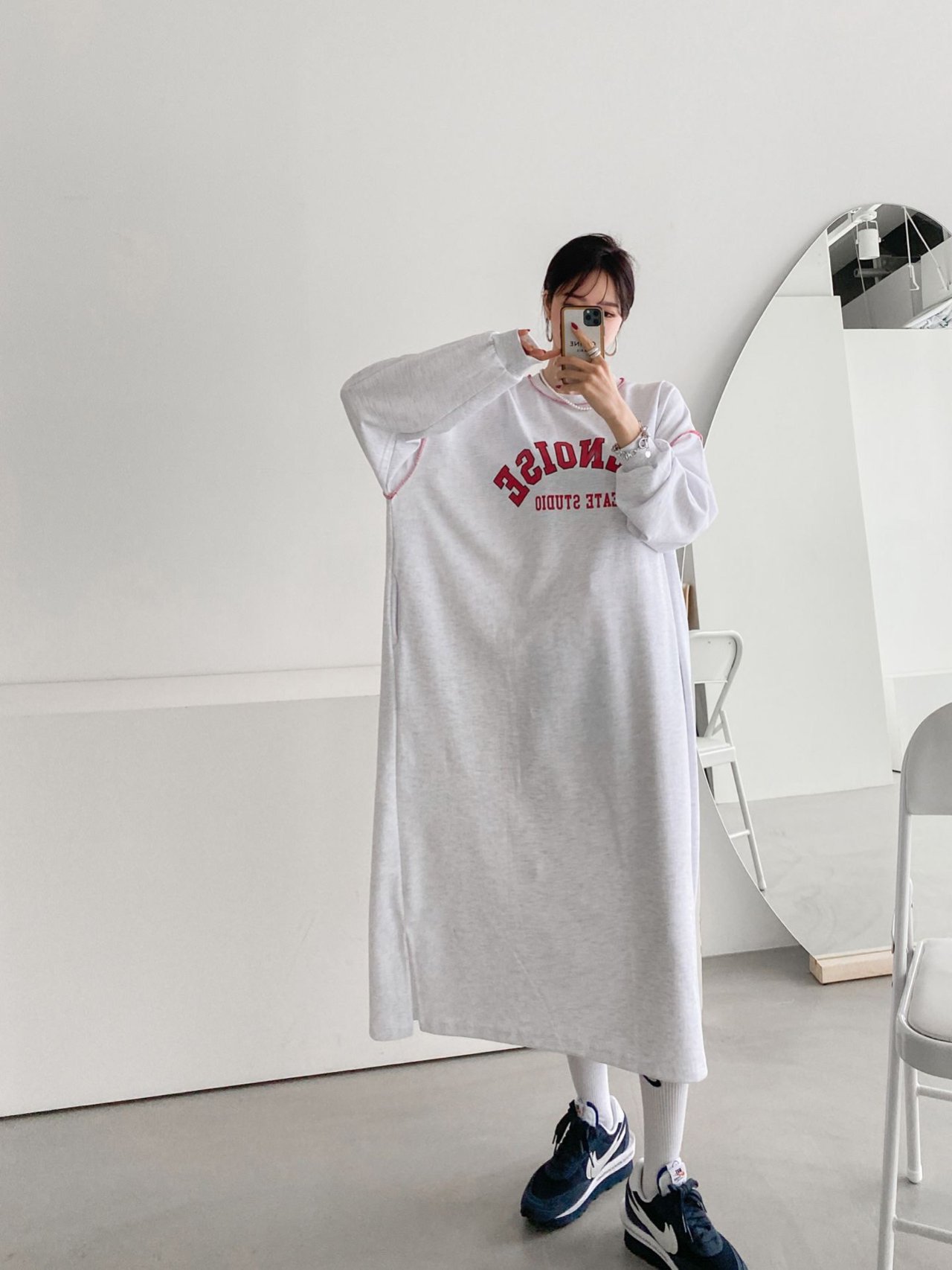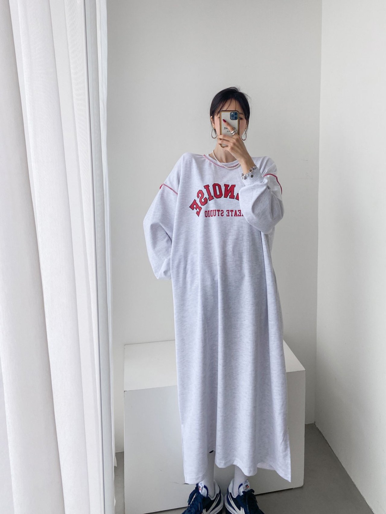 3color 스테치 루즈핏 롱 원피스