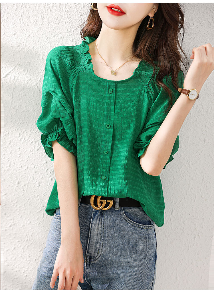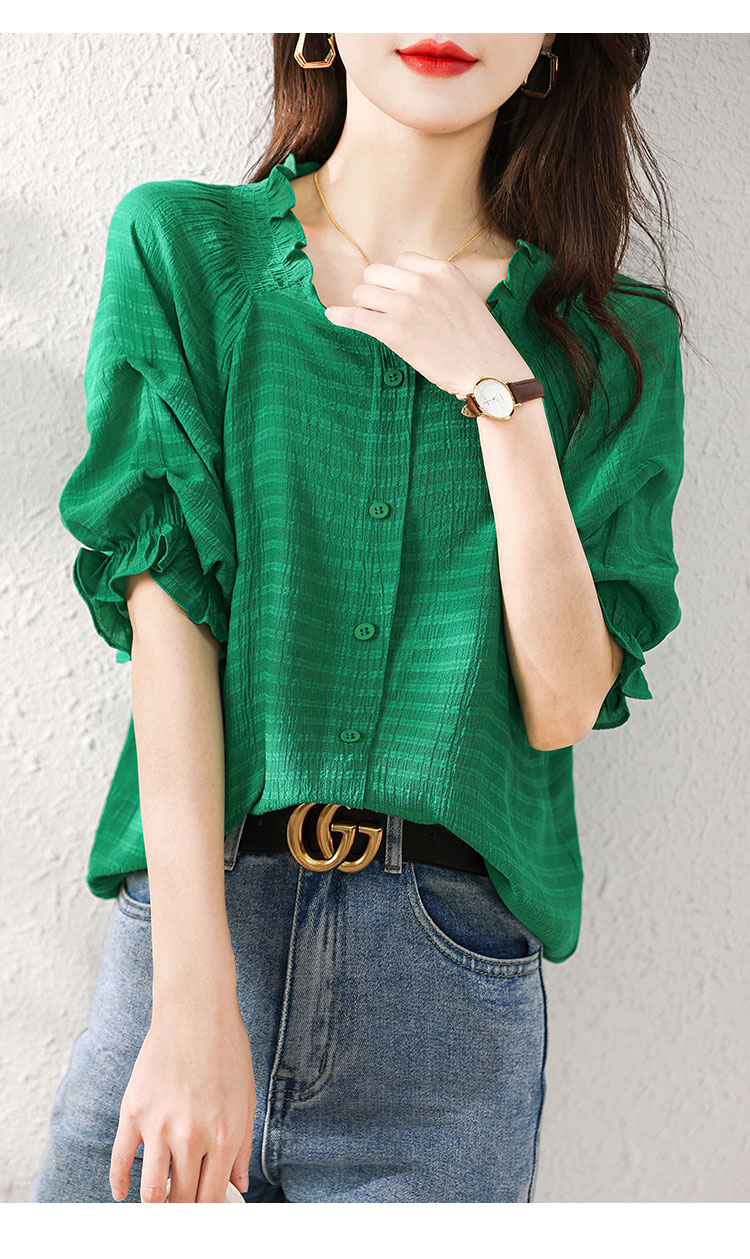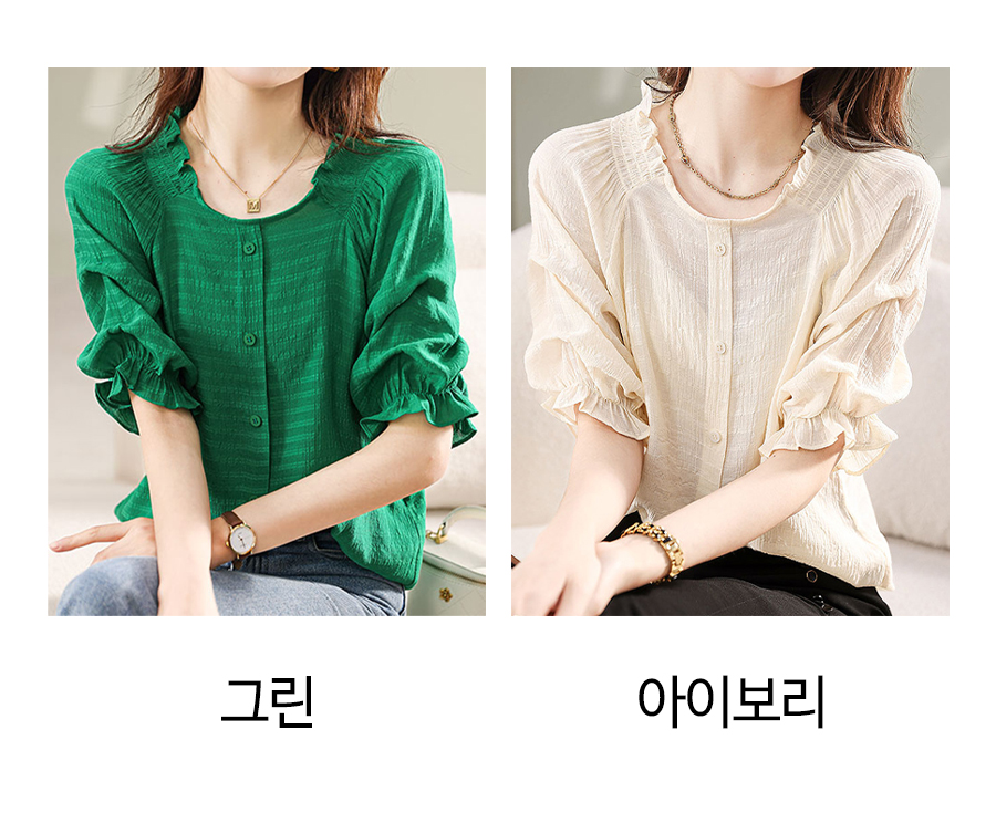 174500 ◈[당일발송] 시원한 잔주름 프릴 블라우스 23490