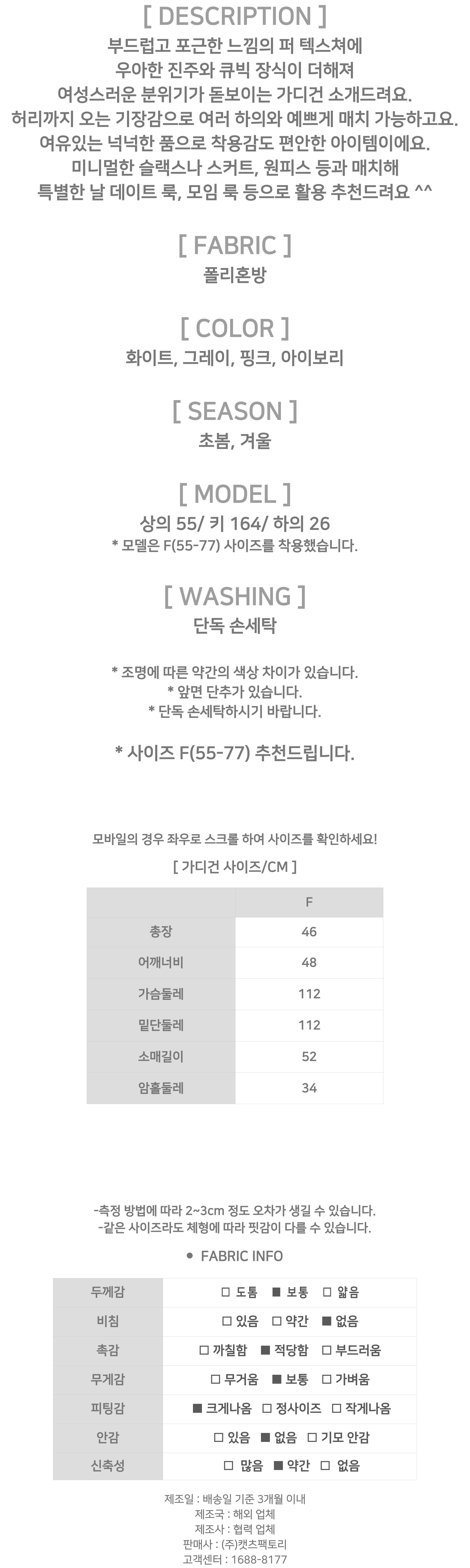 176648 ◈[당일발송] 진주 큐빅 퍼 가디건 23590