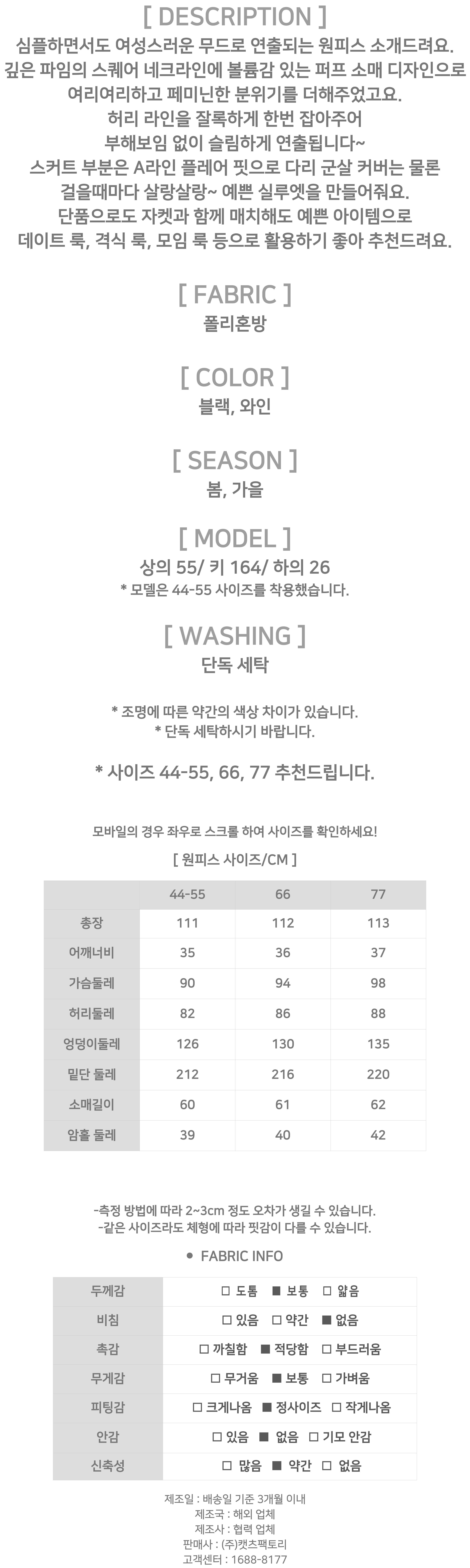 177543 ◈[당일발송] 여성스러운 스퀘어 퍼프 원피스 19980