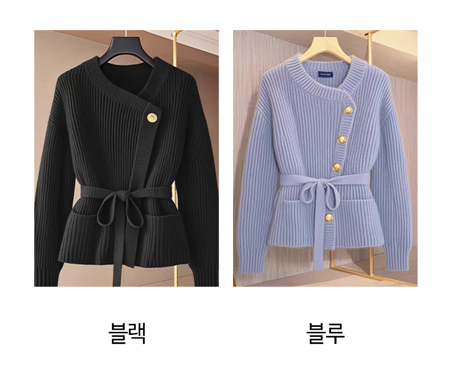 ◈[당일발송] 도톰 니트 금장 벨티드 가디건