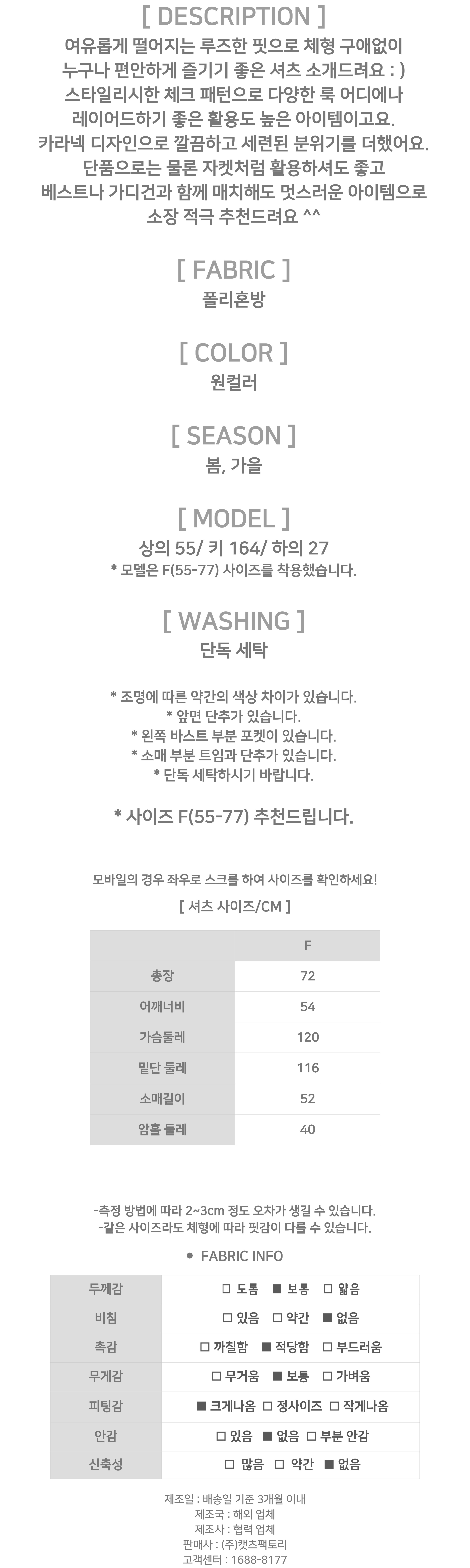 177191 ◈[당일발송] 루즈핏 컬러 체크 남방 14890