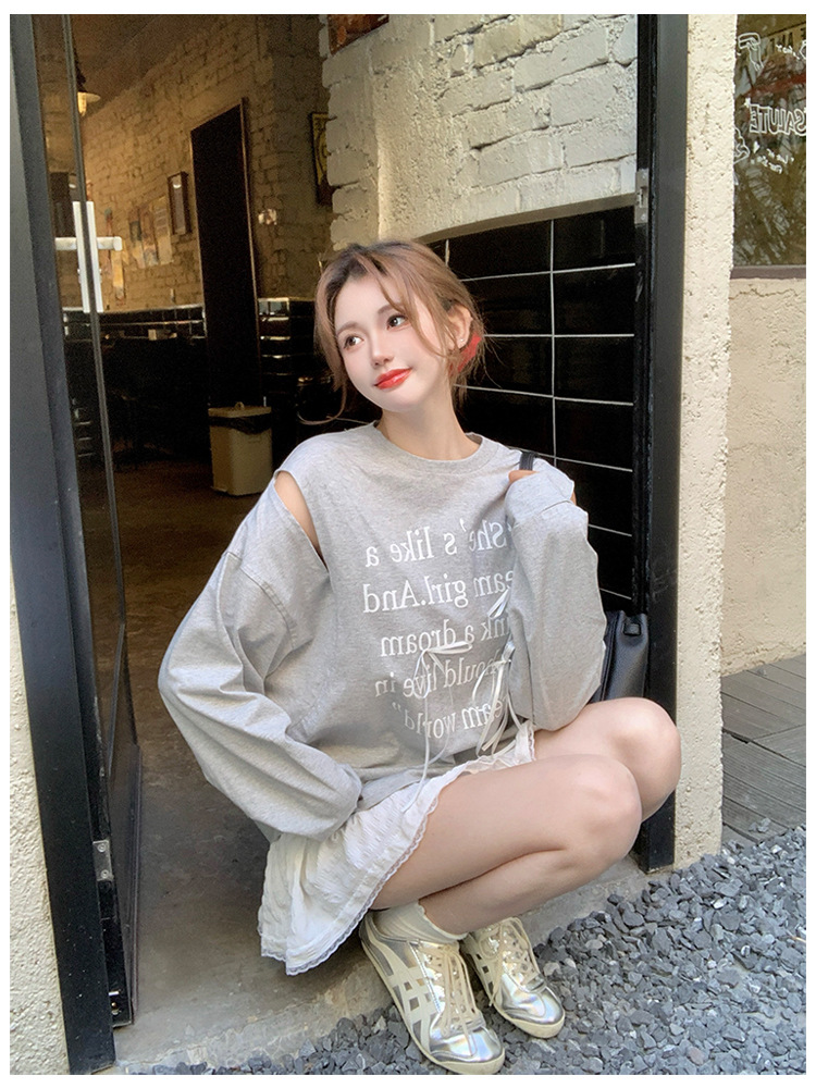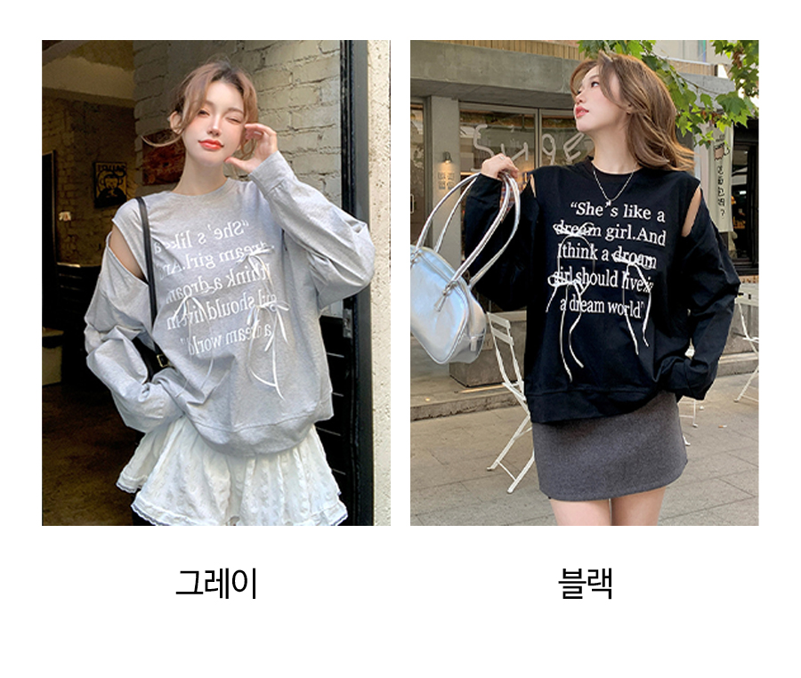 182072 숄더 트임 키치 무드 리본 레터링 티 18180