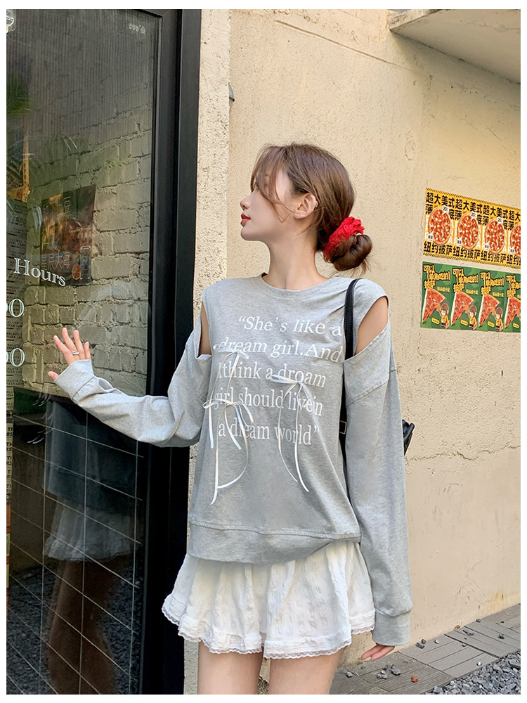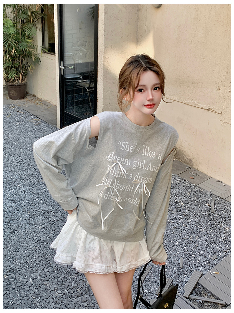 숄더 트임 키치 무드 리본 레터링 티
