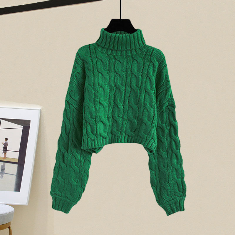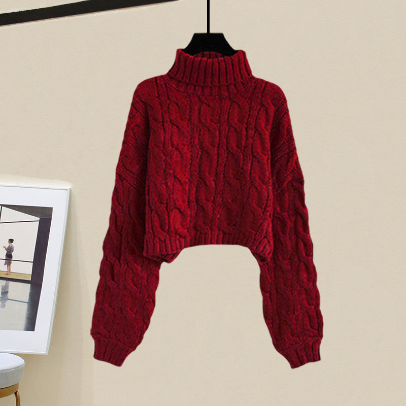 [당일발송]★토요특가 자정마감 50%★도톰 꽈배기 폴라 니트&니트 플레어 스커트 2SET