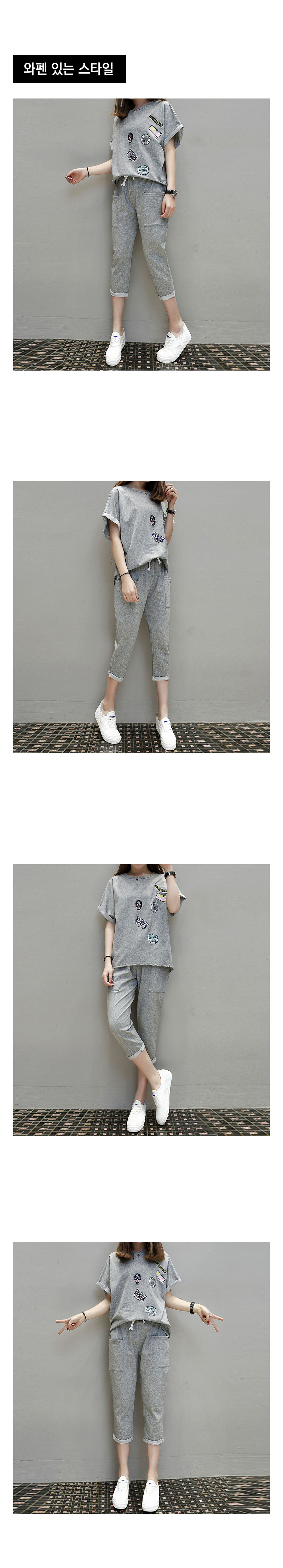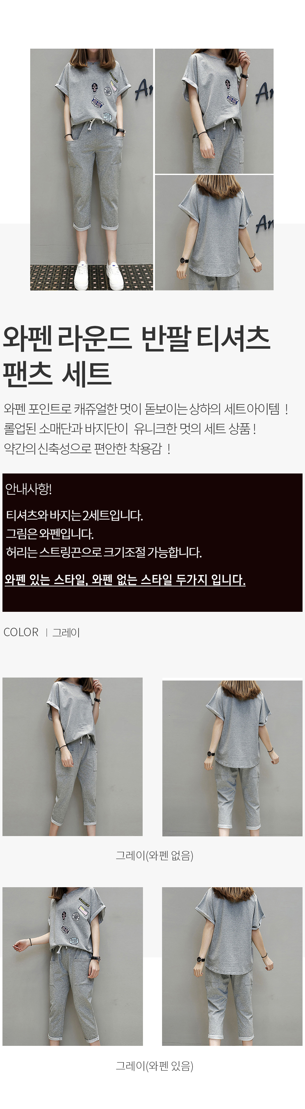 ◈[당일발송] 와펜 라운드 반팔 티셔츠 팬츠 세트
