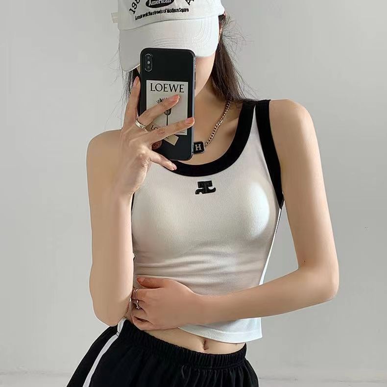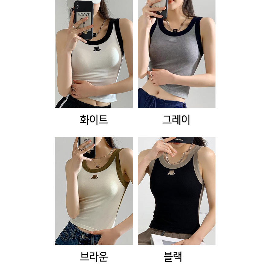 ◈[당일발송] 내장 브라 골지 배색 스포티 나시탑