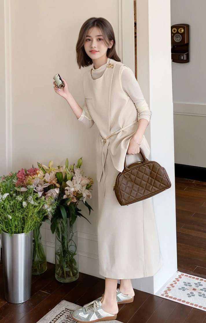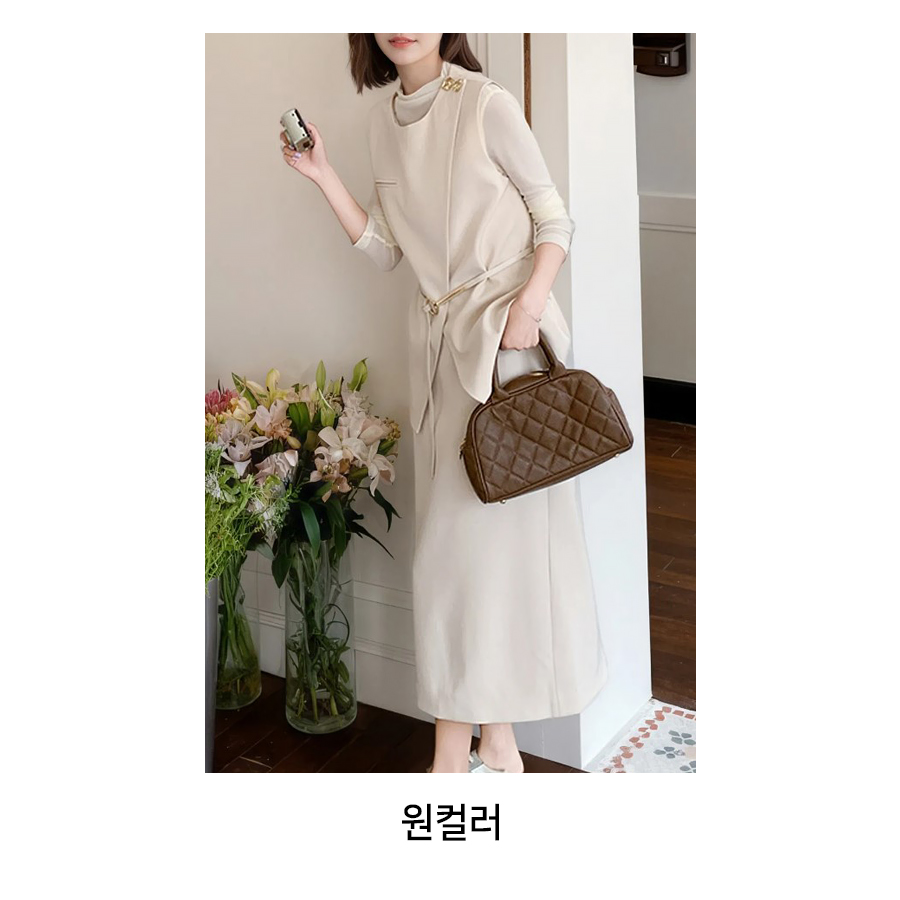 ◈[당일발송] 골드버튼 벨티드&티셔츠& 베스트 3SET
