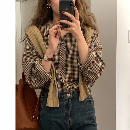 셔츠 특유의 단정함과 체크 패턴이 주는 클래식한 매력이 잘 어우러져