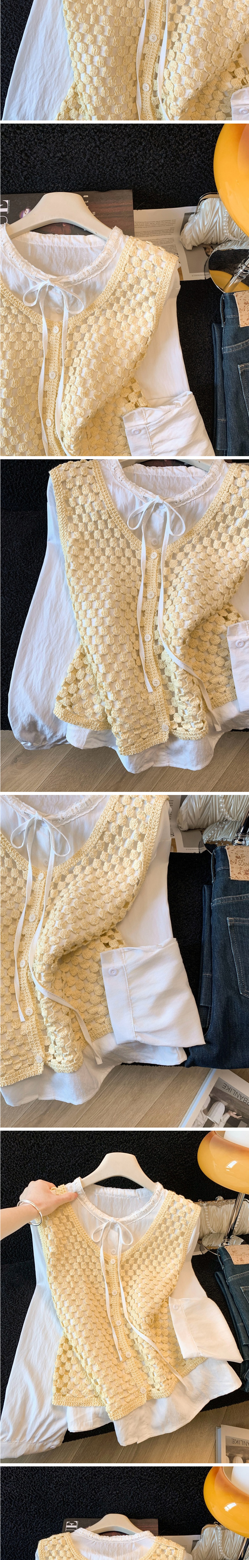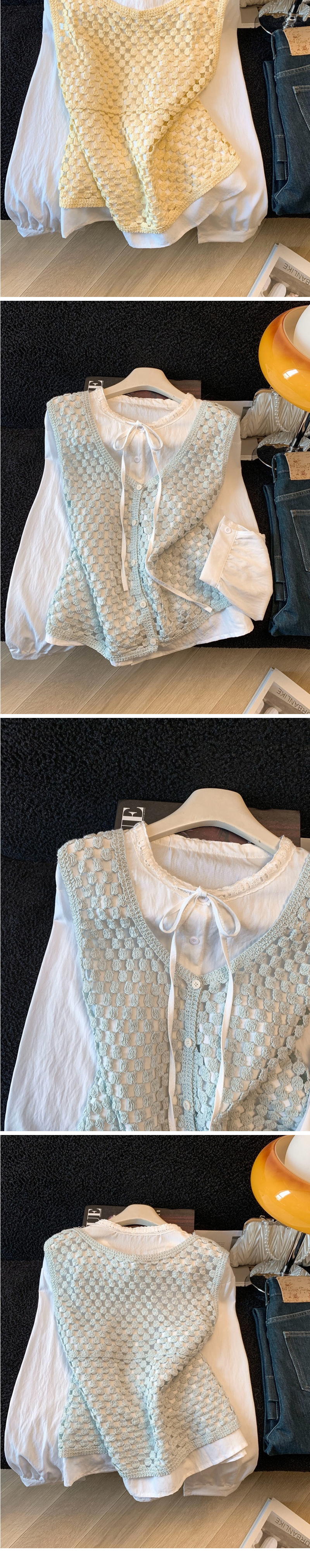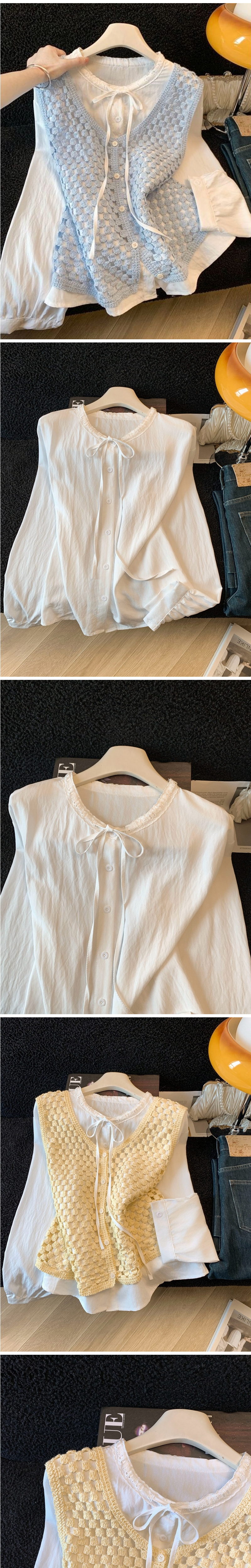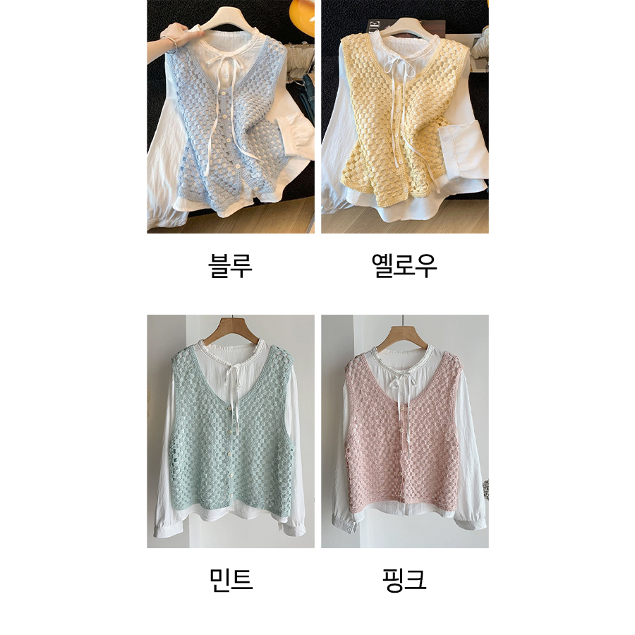 러블리 크로셰 니트 베스트&리본 블라우스 2SET