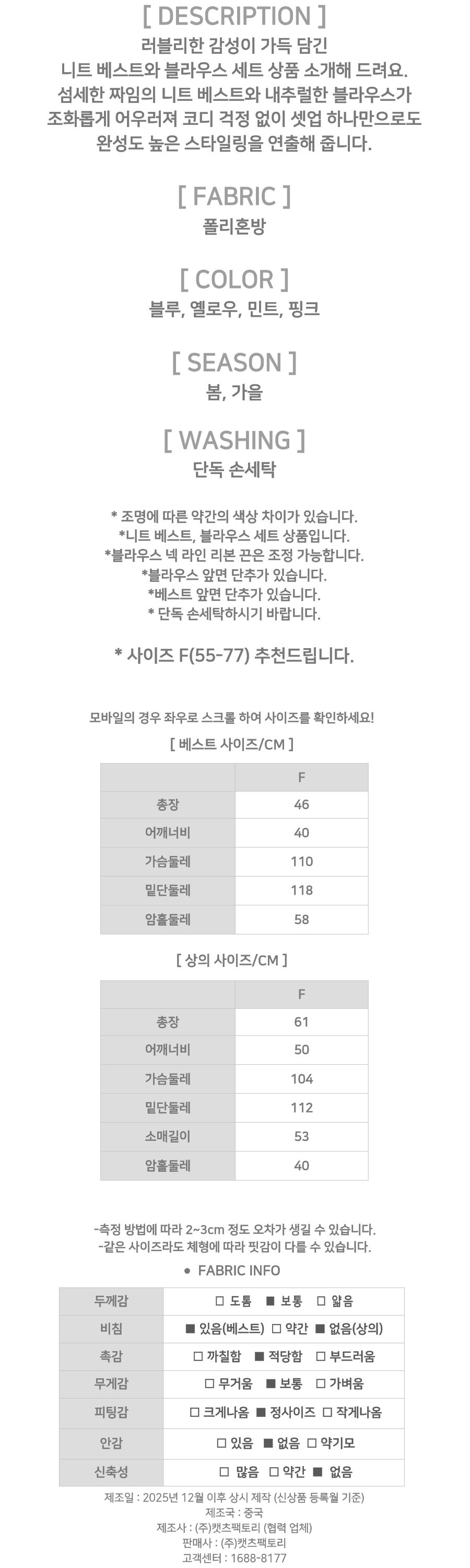182475 러블리 크로셰 니트 베스트&리본 블라우스 2SET 39980