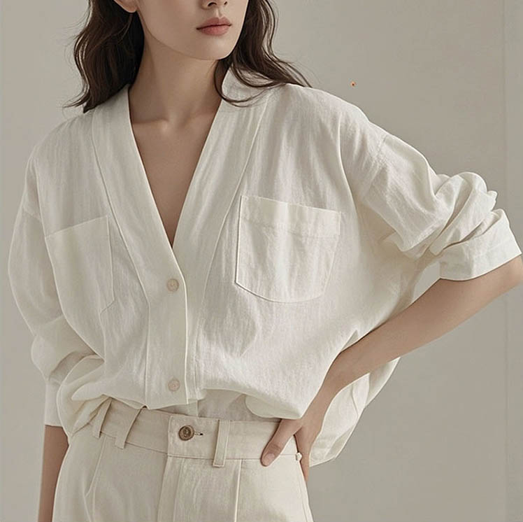 [당일발송]미니멀 브이넥 포켓 셔츠
