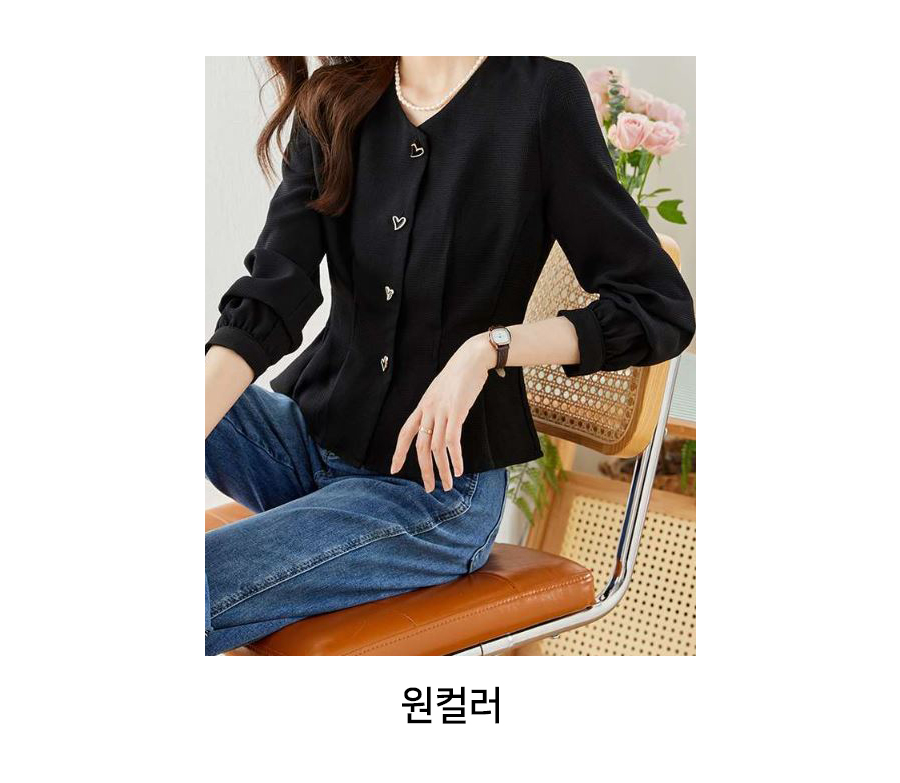 [자정마감 -4000원] 하트 버튼 블랙 블라우스
