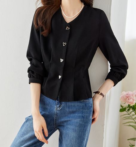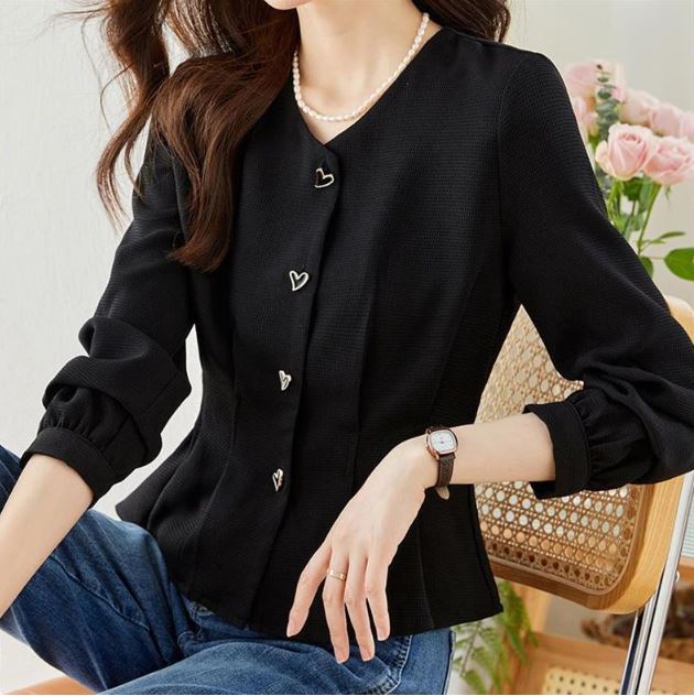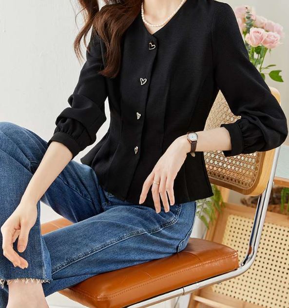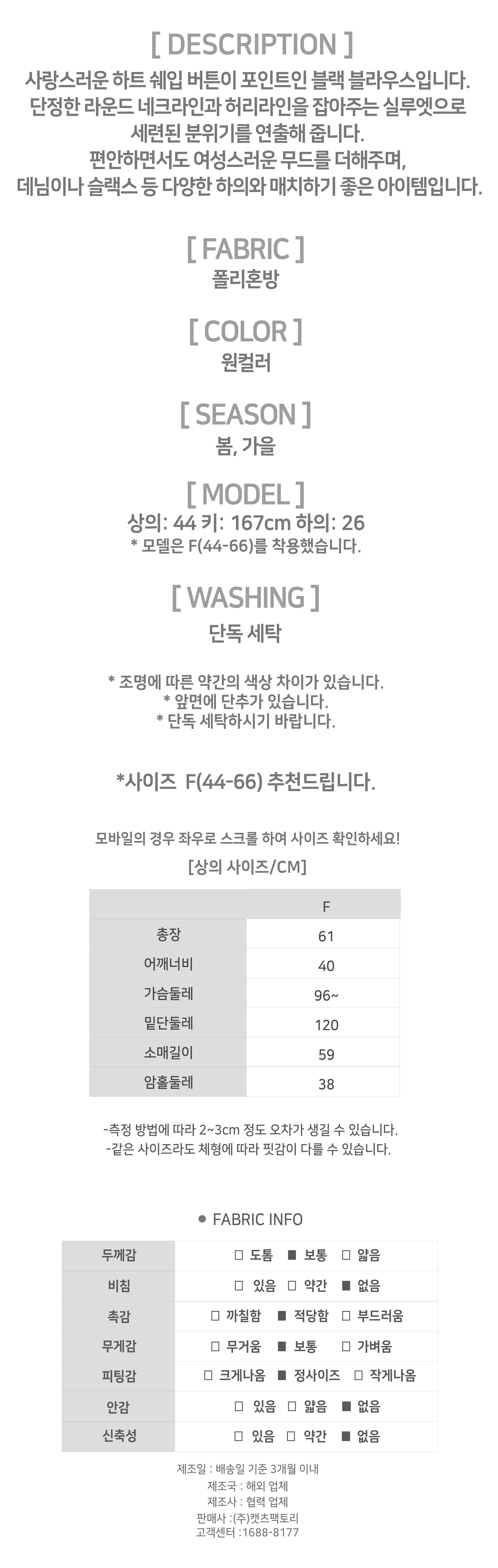 180143 [자정마감 -4000원] 하트 버튼 블랙 블라우스 25980