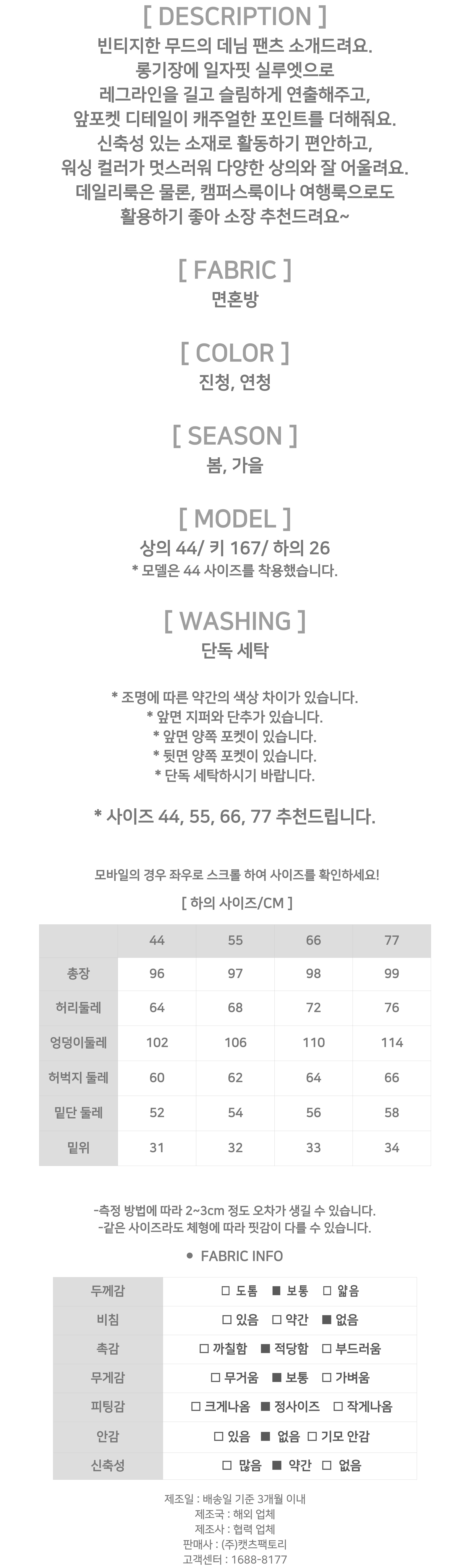 180230 ◈[당일발송] 앞포켓 빈티지 워싱 롱 데님 팬츠 23480