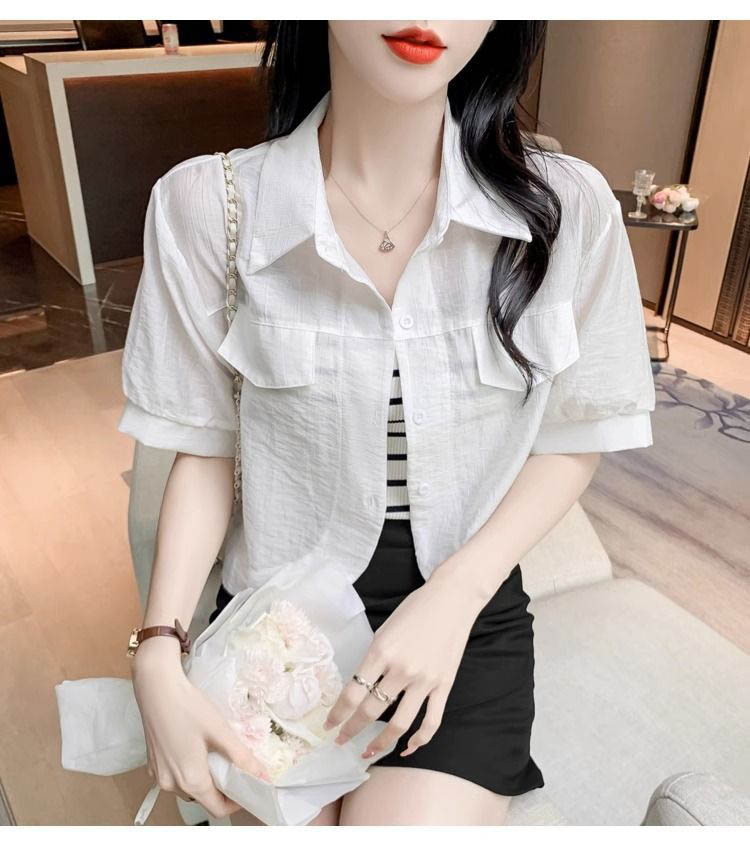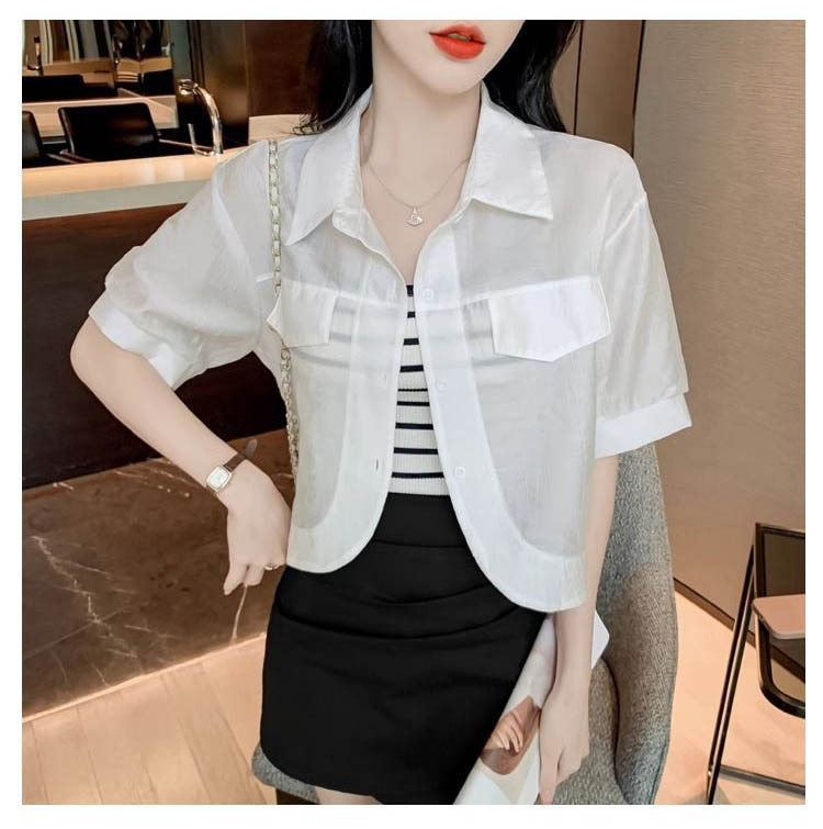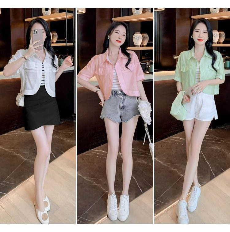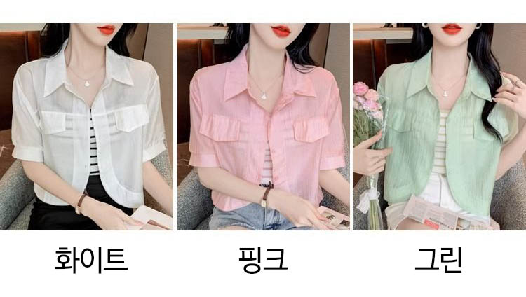 178042 ★금요특가 자정마감 50%★크롭 반팔 카라 블라우스 겸 자켓[셔켓] 13880