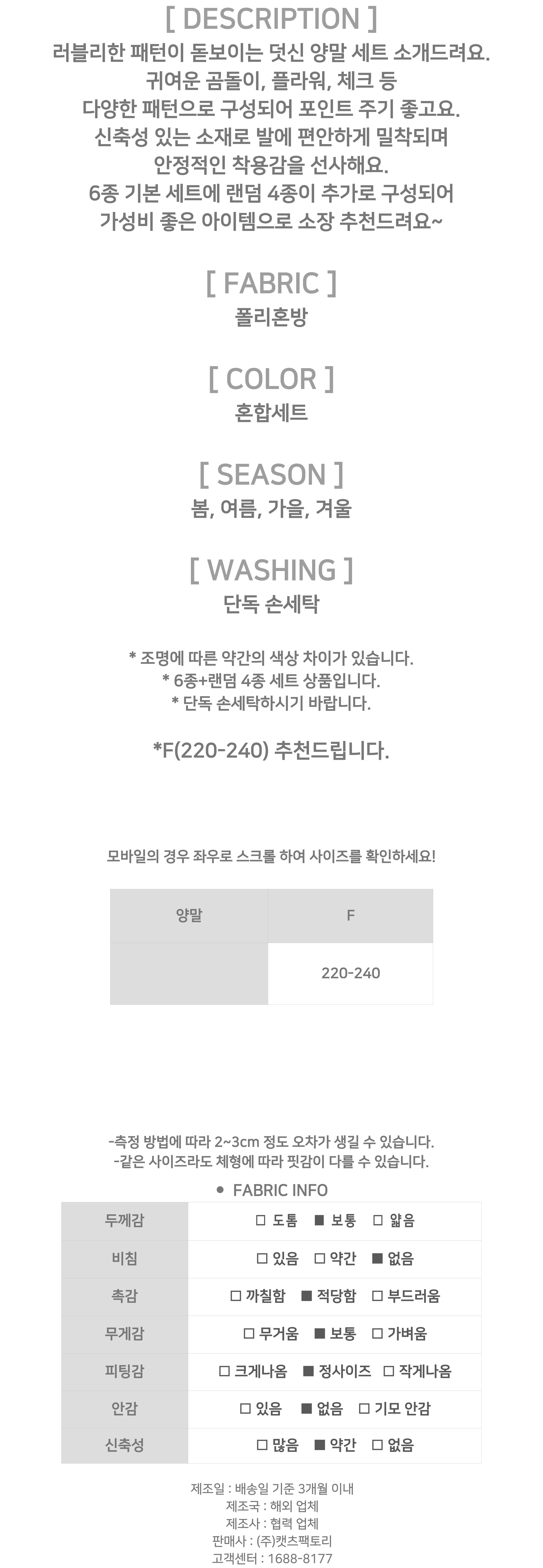180225 ★월요특가 자정마감 50%★귀여운 패턴 실속 덧신 6종+랜덤 4종 세트 19980