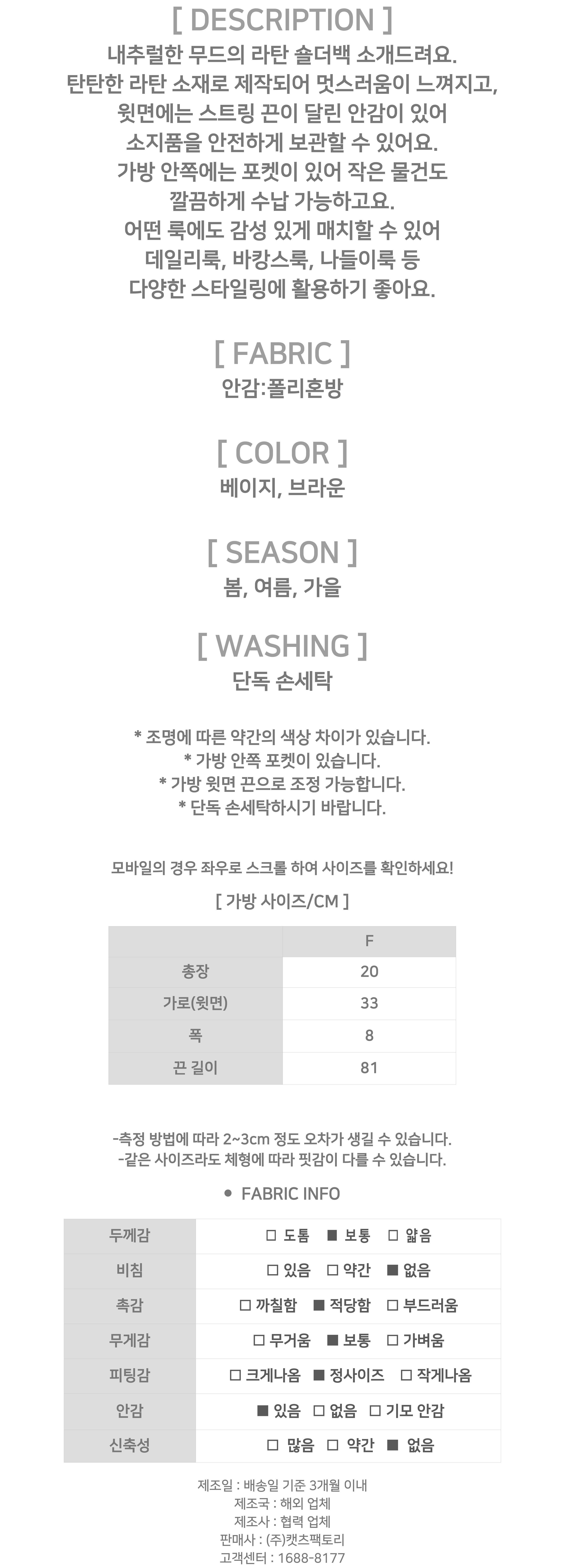 - 제품 사이즈는 측정 방식에 따라 2~3cm의 오차가 있을 수 있으며, 이는 불량의 사유가 되지 않습니다.