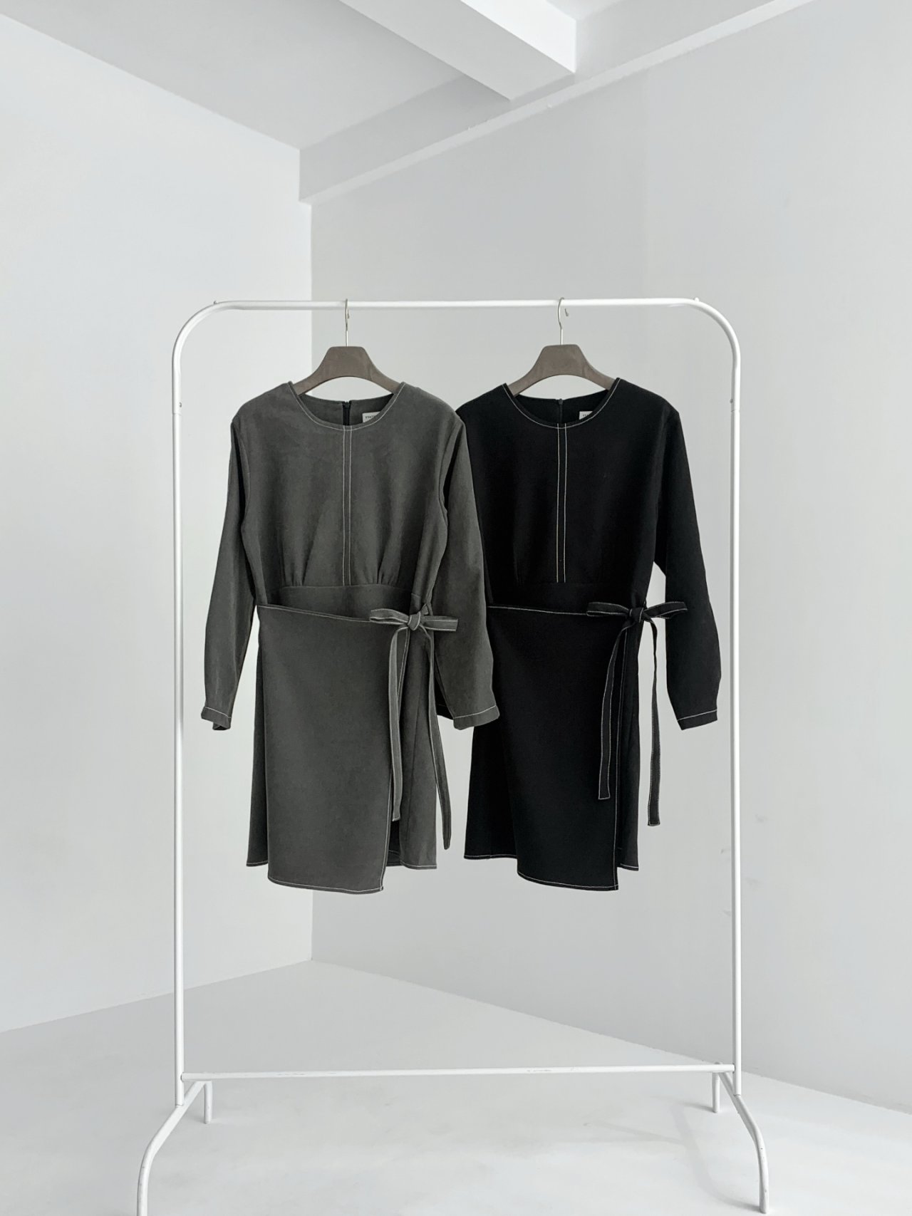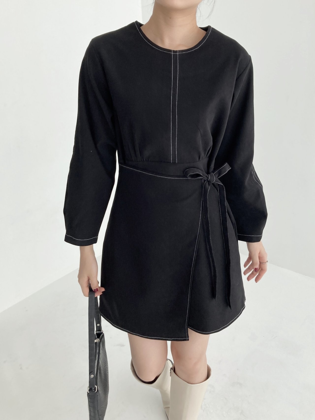 핀턱 랩 리본 스티치원피스