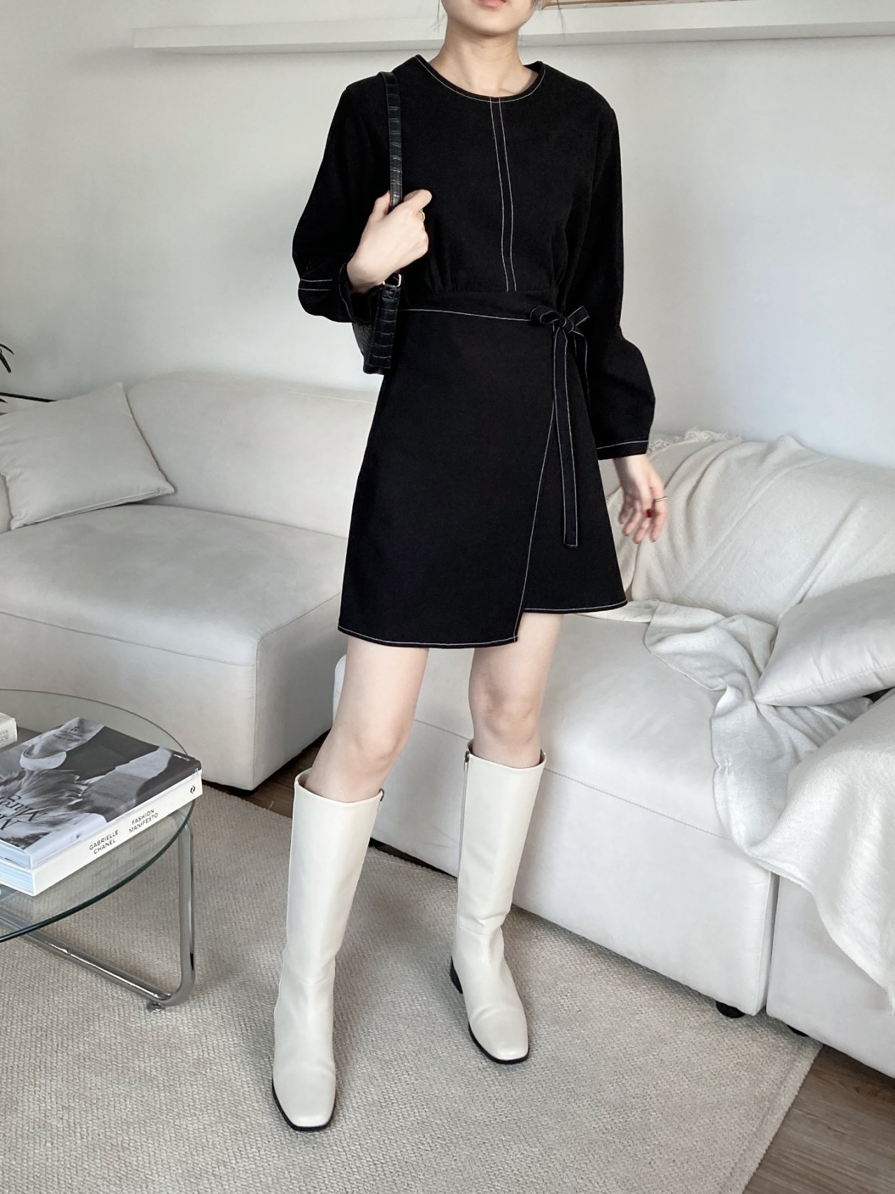 167725 핀턱 랩 리본 스티치원피스 58000