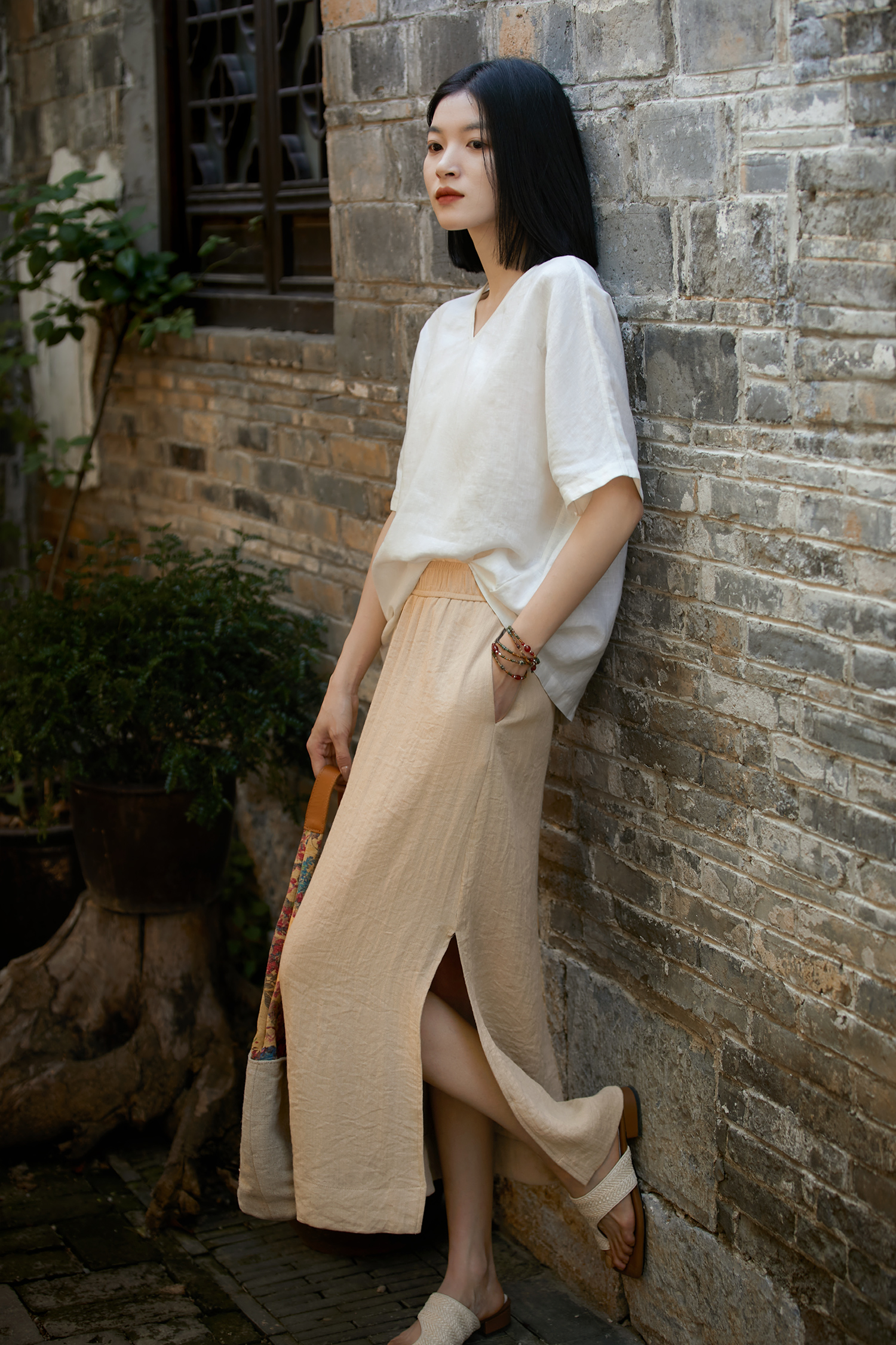 179297 .내추럴 슬릿 밴딩 롱 스커트 35280