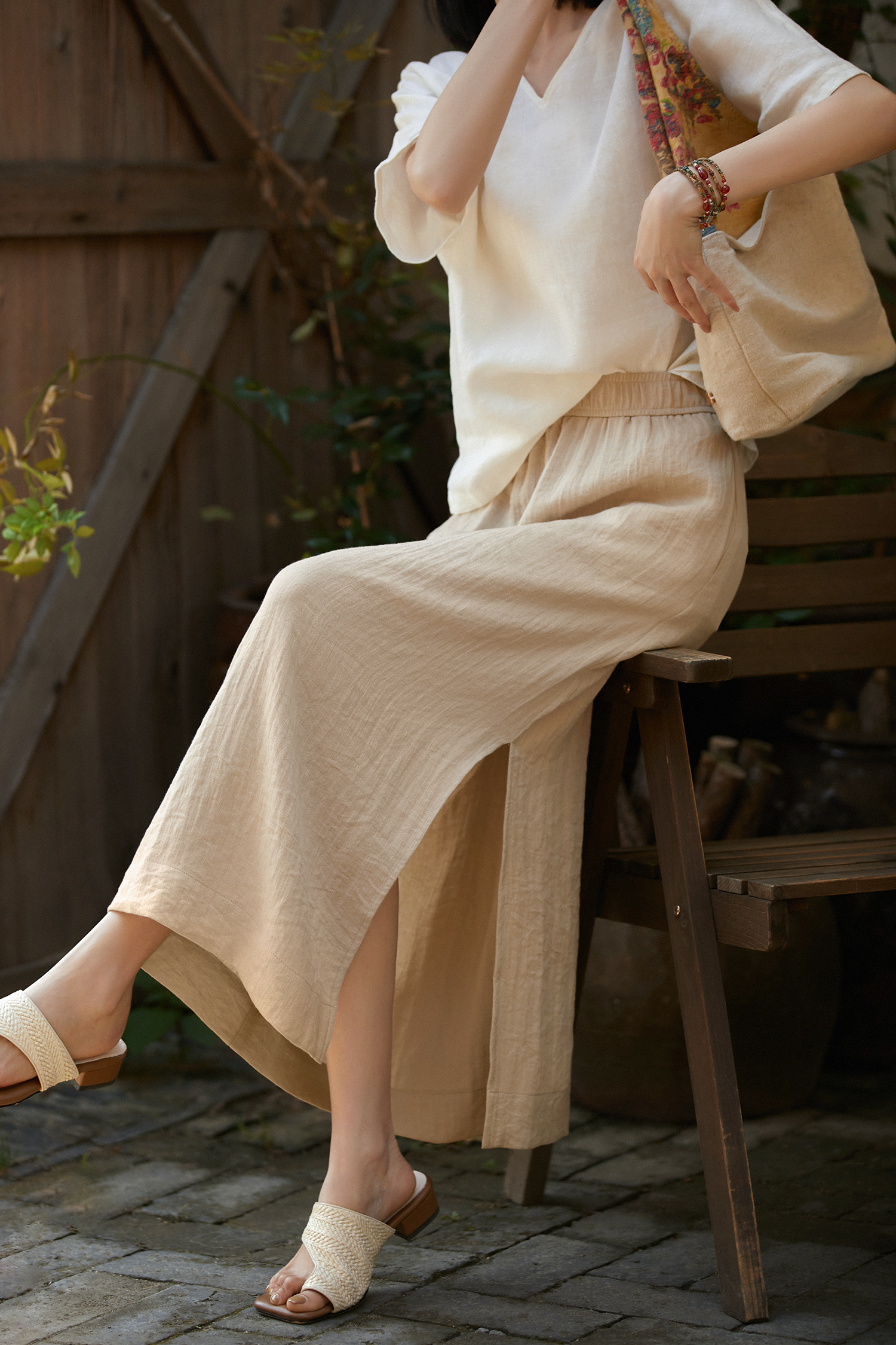 .내추럴 슬릿 밴딩 롱 스커트