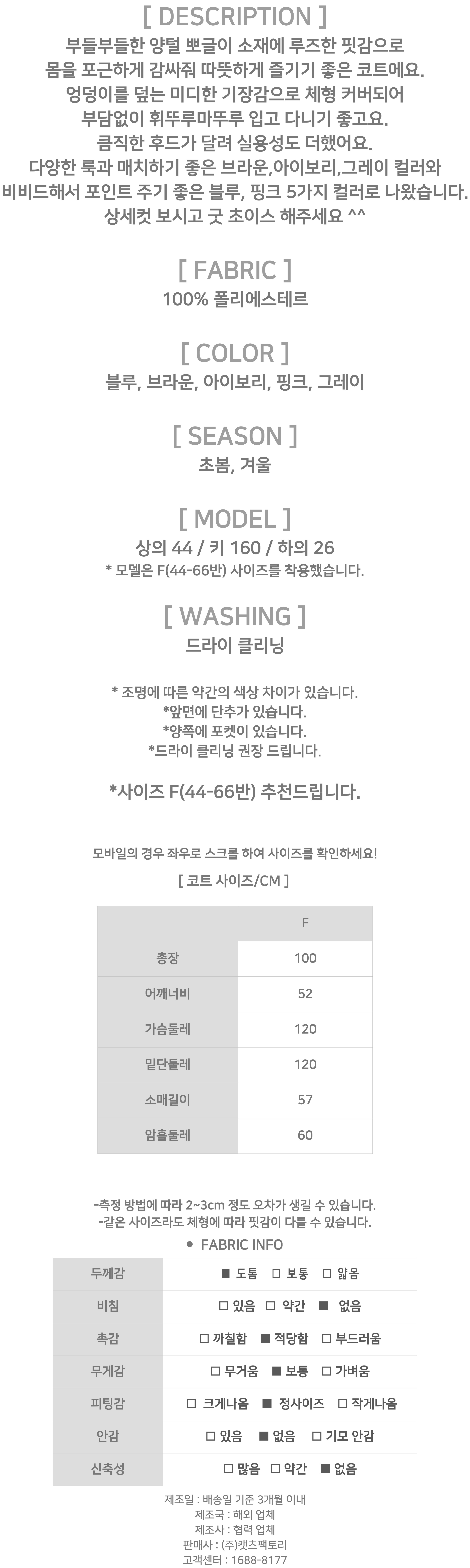 172959 🐑선착순 할인! 만원추가◈자정마감◈[당일발송]★일요특가 자정마감 50%★포근한 양털 뽀글이 후드 코트 79980
