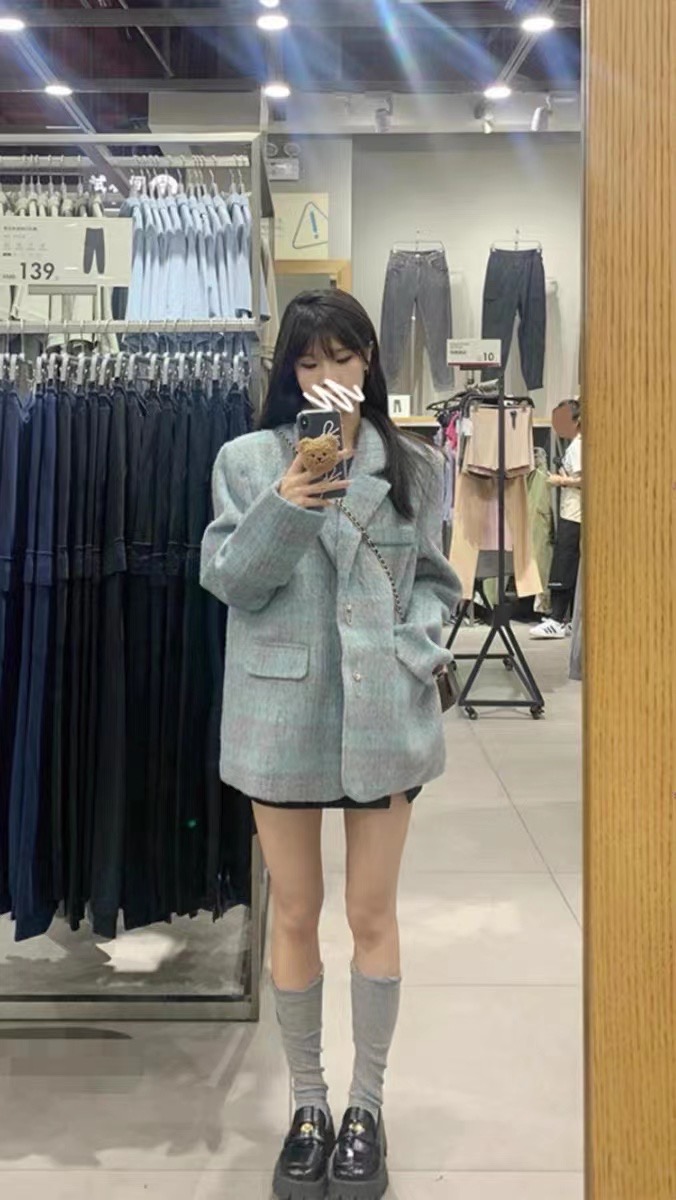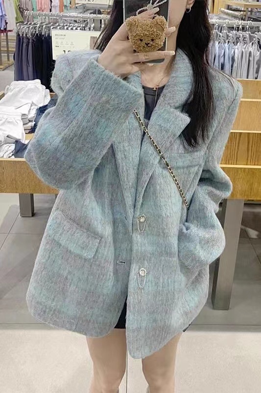 ◈[당일발송]화사한 체크 패턴 퍼 자켓
