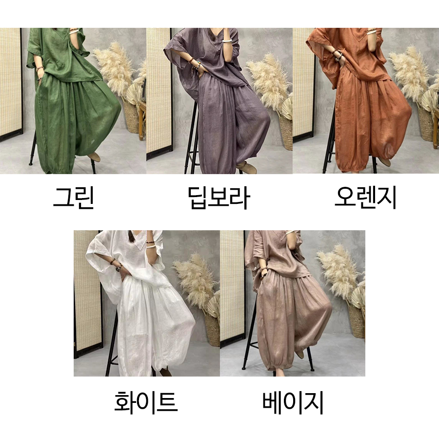 174949 ◈[당일발송] 오버핏 브이넥 린넨 티셔츠&팬츠 2SET 37490