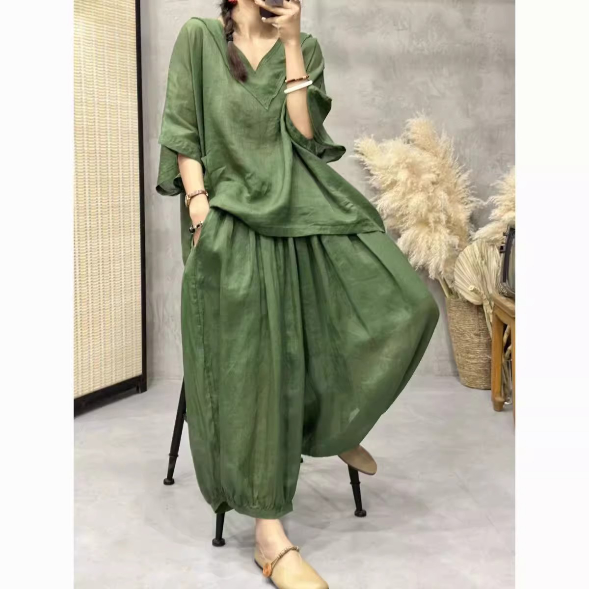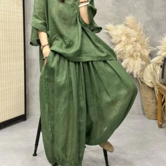 ◈[당일발송] 오버핏 브이넥 린넨 티셔츠&팬츠 2SET