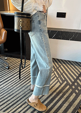 ◈[당일발송] 롤업 라인 세미 와이드 데님