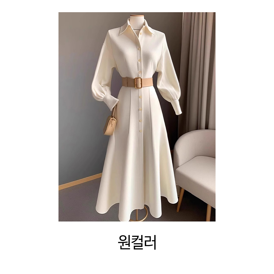 ◈[당일발송] 우아한 벨티드 셔츠 원피스