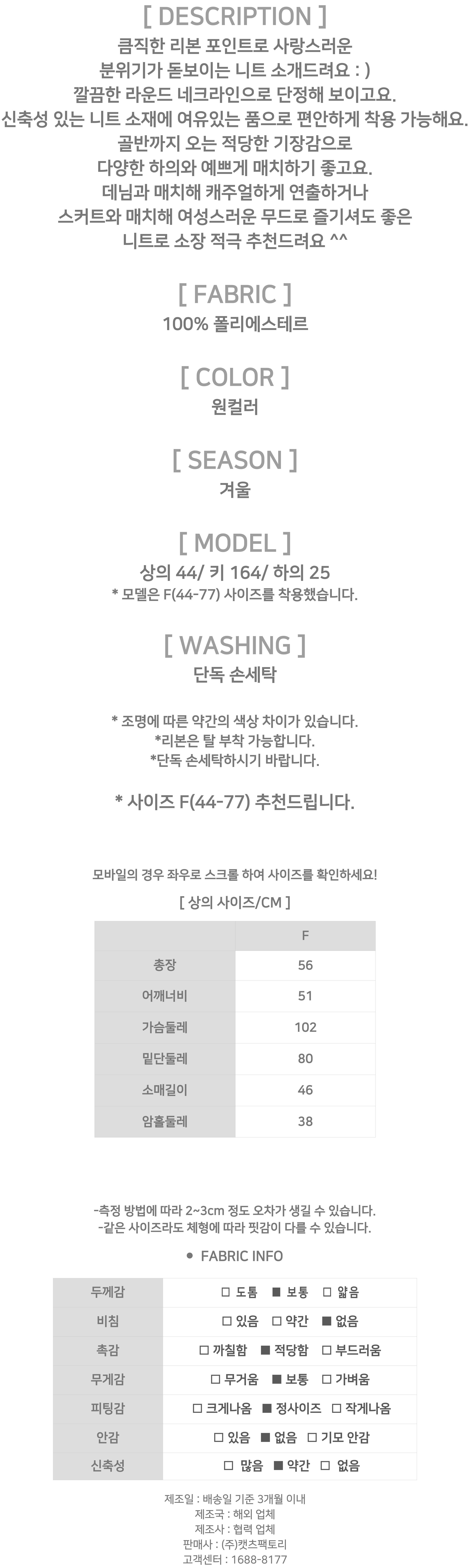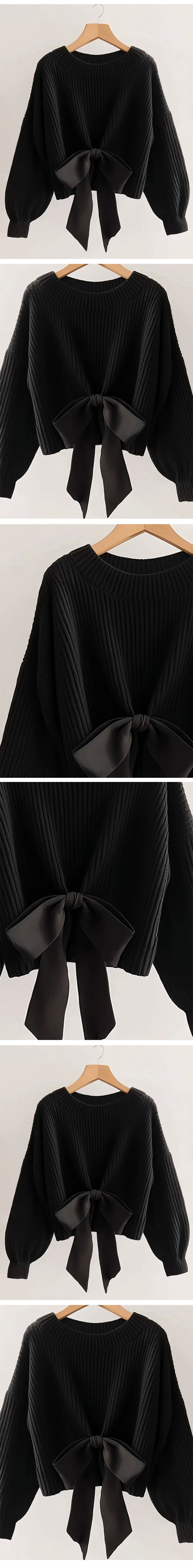 176519 [당일발송]★수요특가 자정마감 50%★로맨틱 블랙 리본 니트 39980