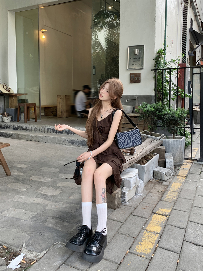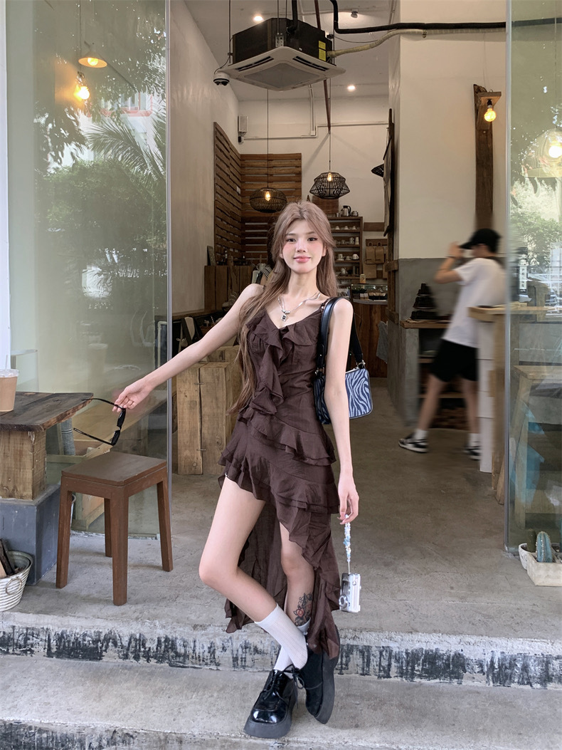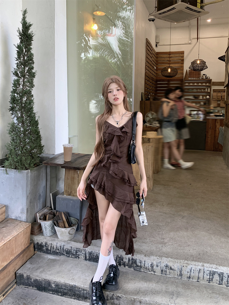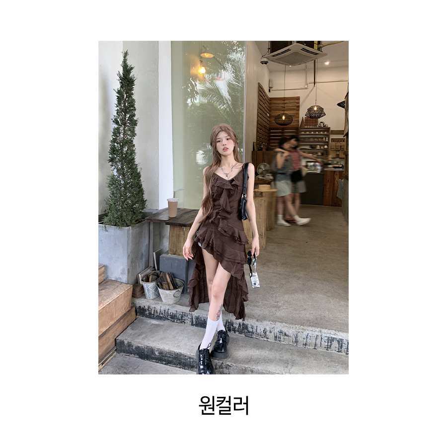 ◈[당일발송] 브이넥 언발 러플 끈나시 원피스