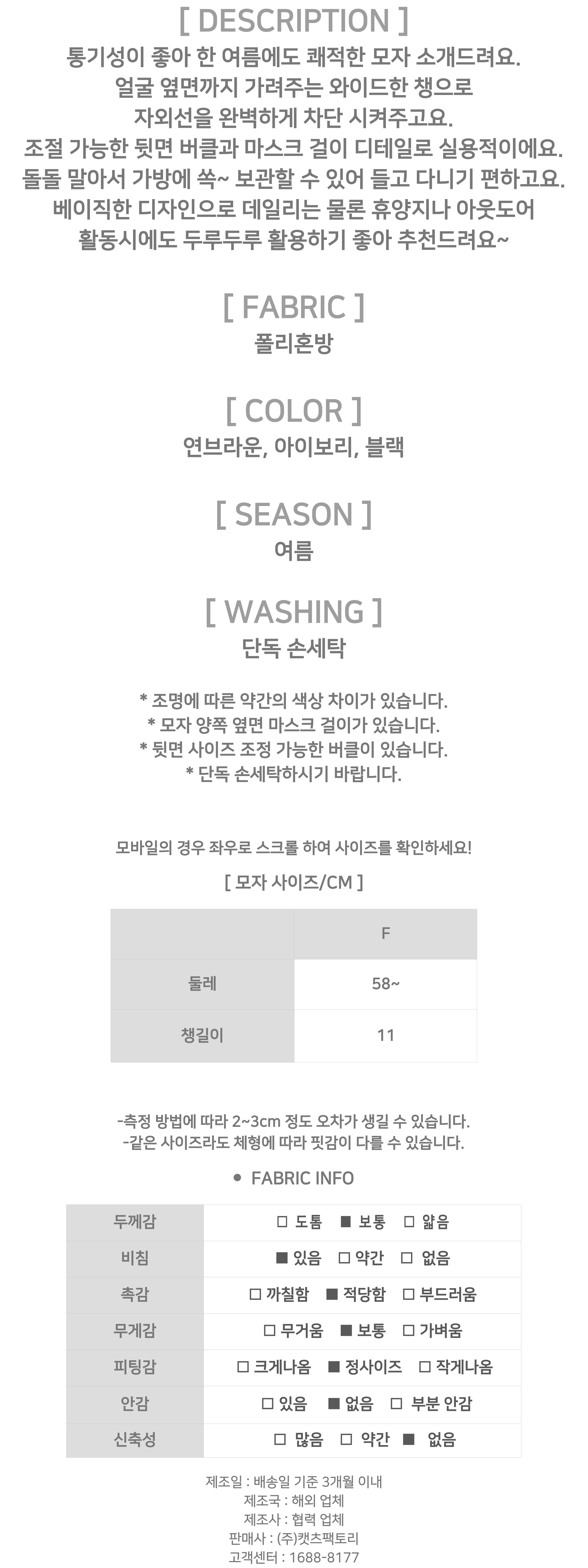 178199 ◈[당일발송] 통기성 좋은 와이드 데일리 모자 7880