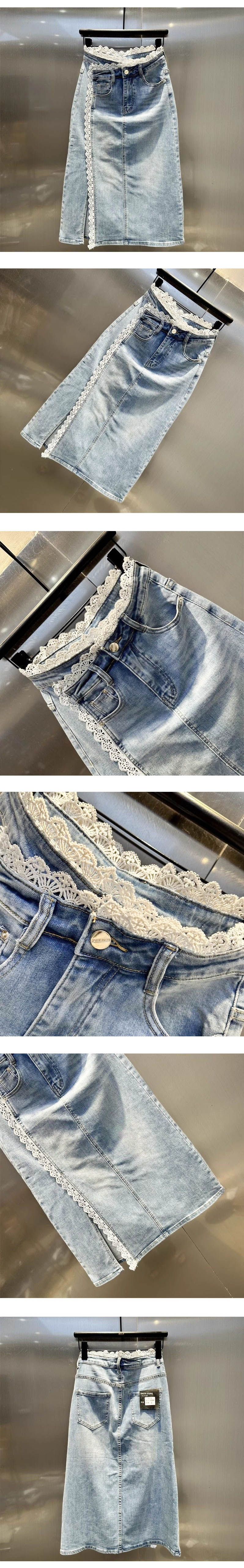 레이스 패치 데님 스커트