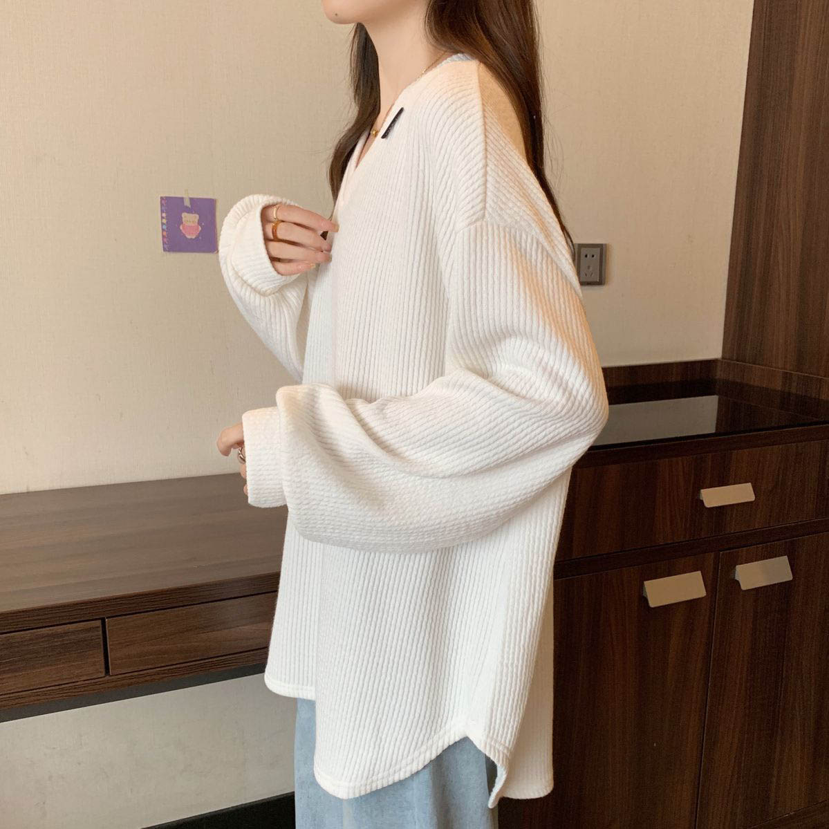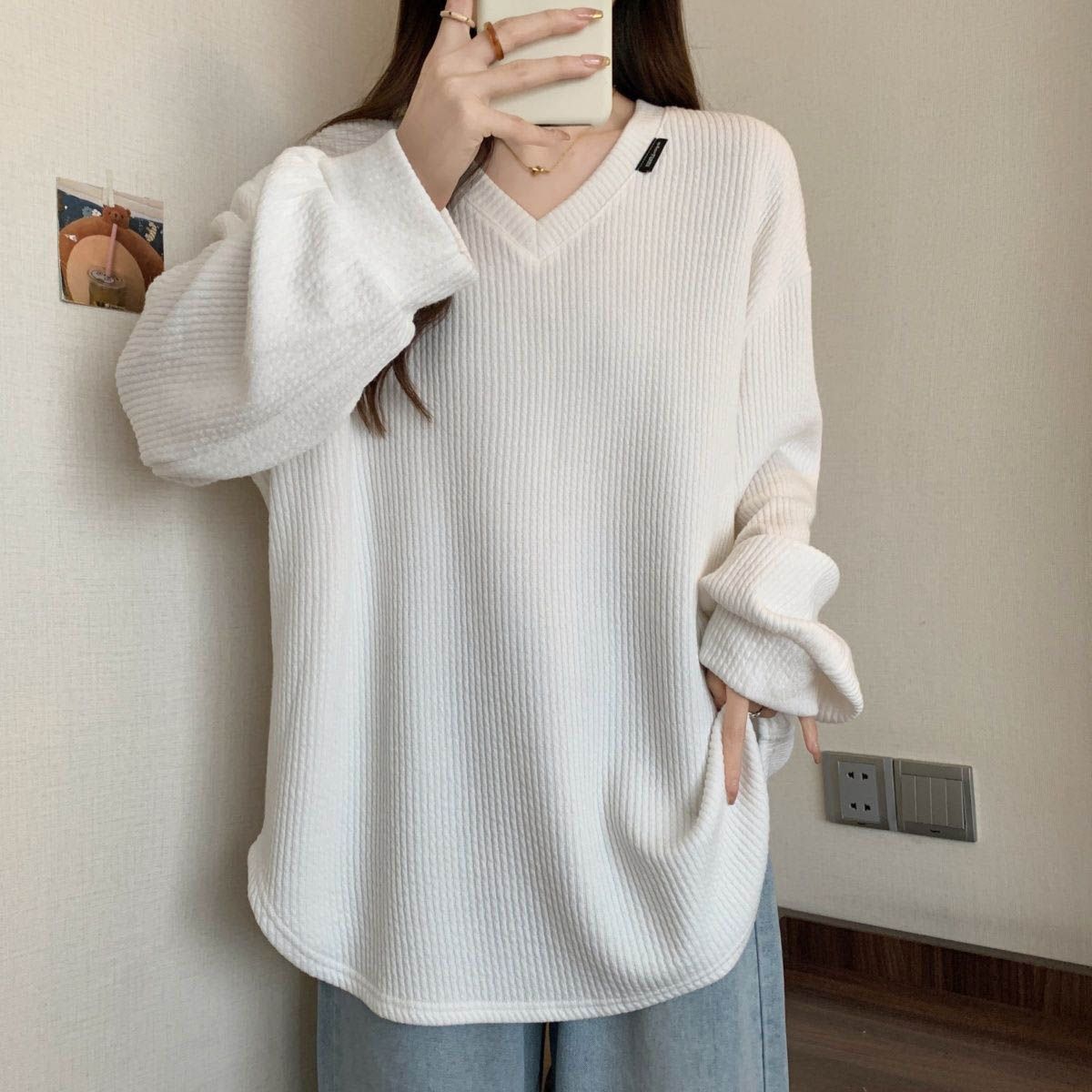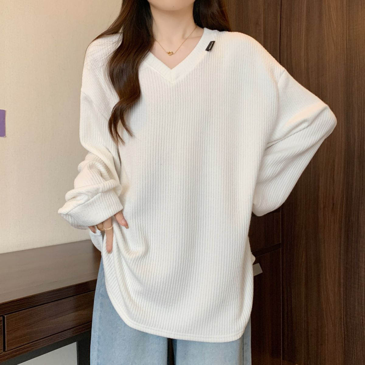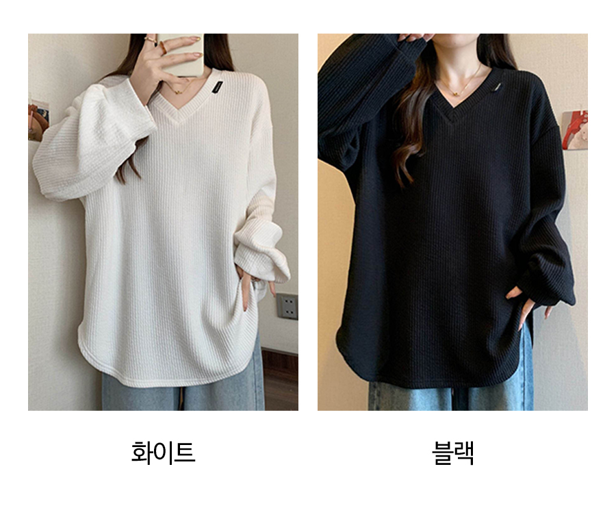 182212 ★목요특가 자정마감 50%★브이넥 루즈 골지 긴팔 티셔츠 19980