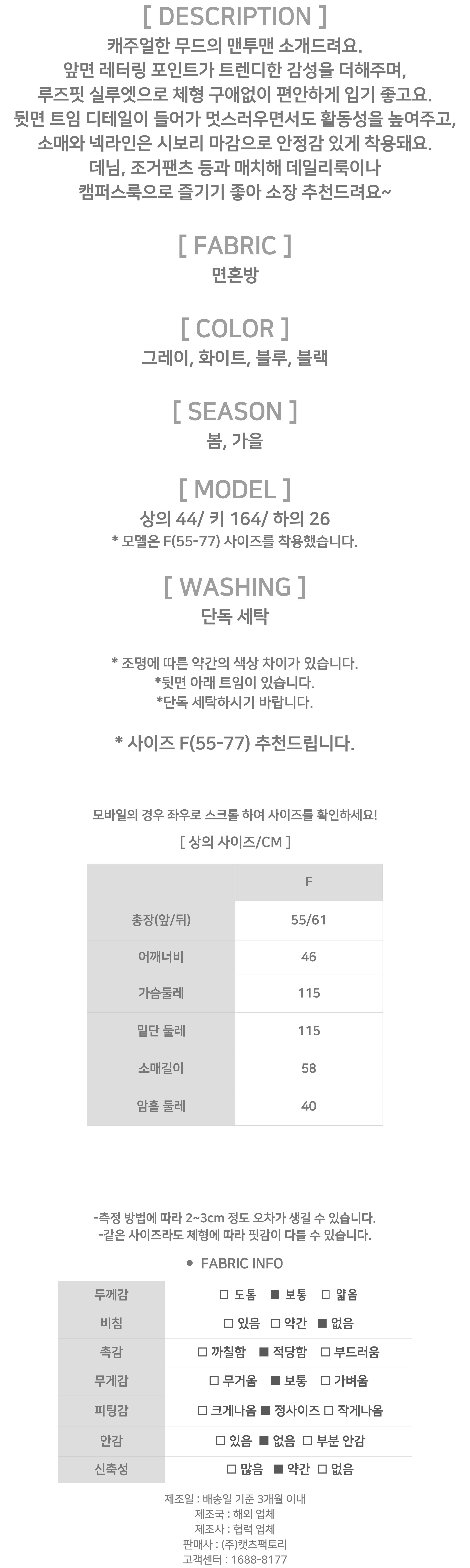 - 상품의 색상은 사용하시는 모니터 사양에 따라 실제 색상과 다소 차이가 있을 수 있으며, 이는 불량의 사유가 되지 않습니다.