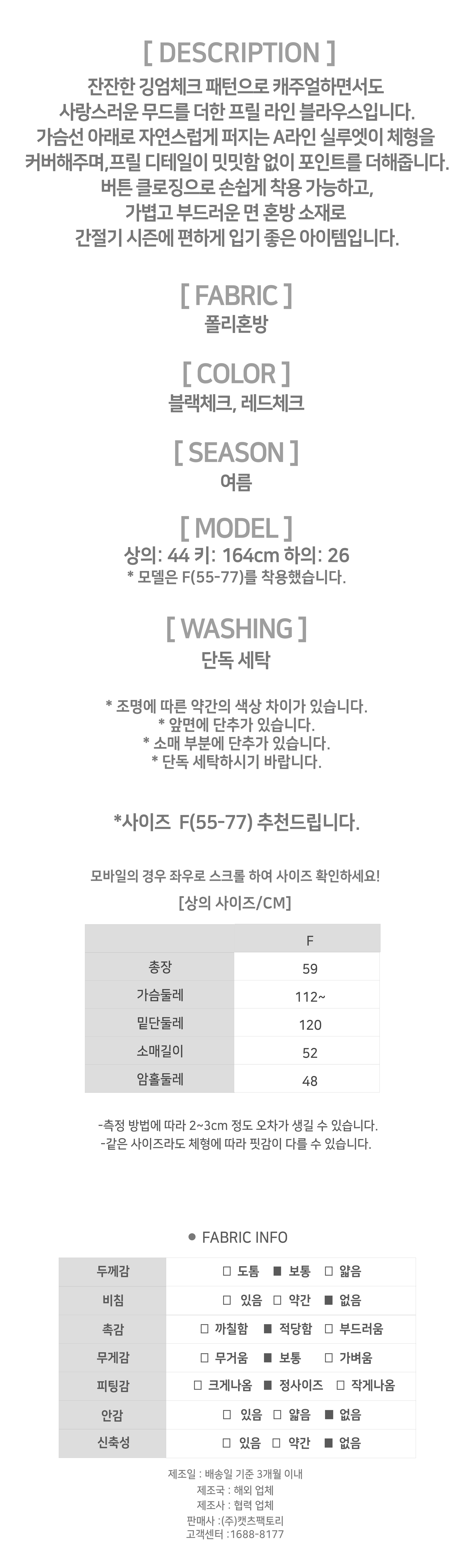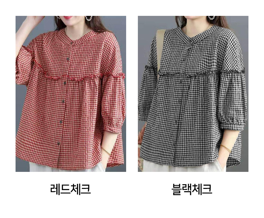 180328 ◈[당일발송] 프릴 라인 체크 블라우스 16690