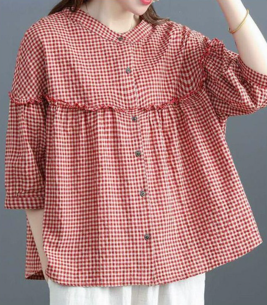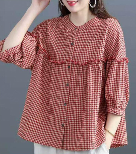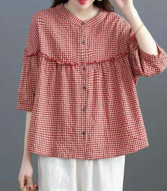 ◈[당일발송] 프릴 라인 체크 블라우스