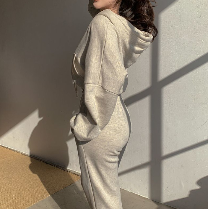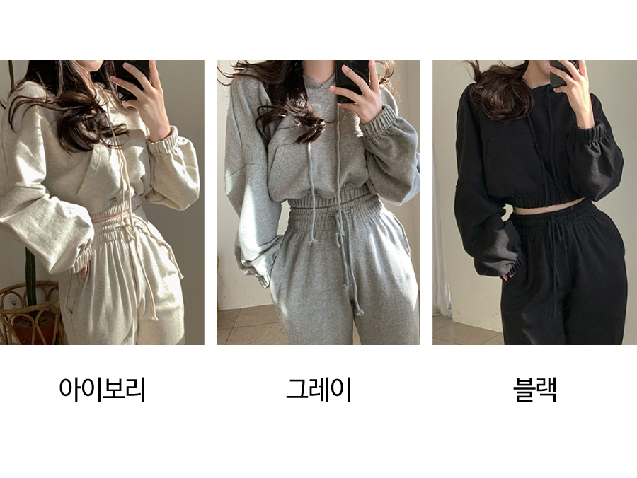 180541 루즈핏 크롭 후드티&밴딩 조거 팬츠 2SET 29380