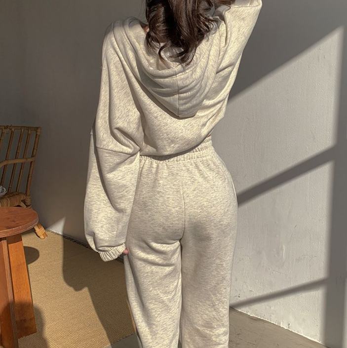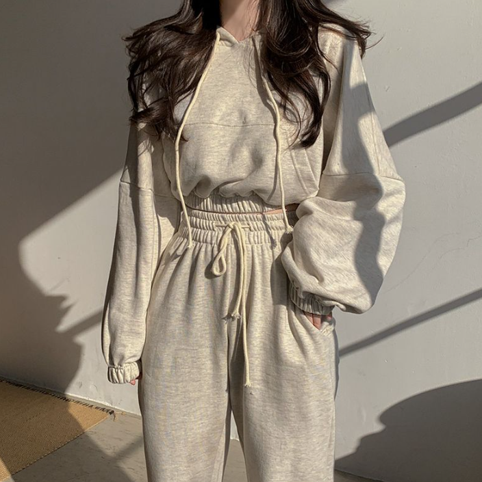 루즈핏 크롭 후드티&밴딩 조거 팬츠 2SET