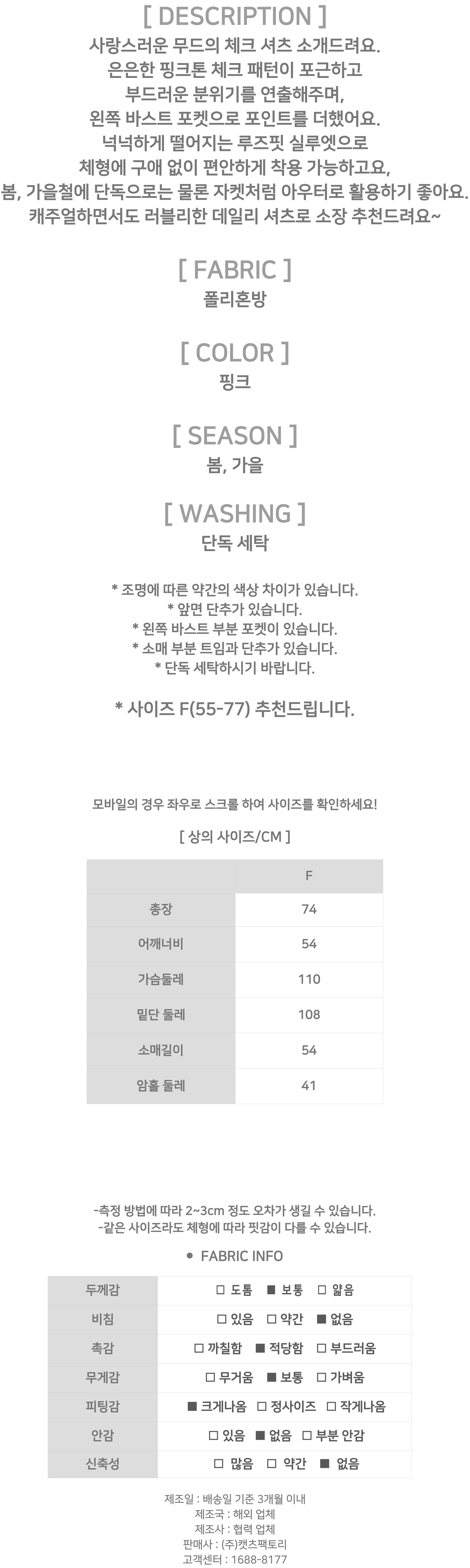 180627 러블리 핑크 체크 데일리 셔츠 22380