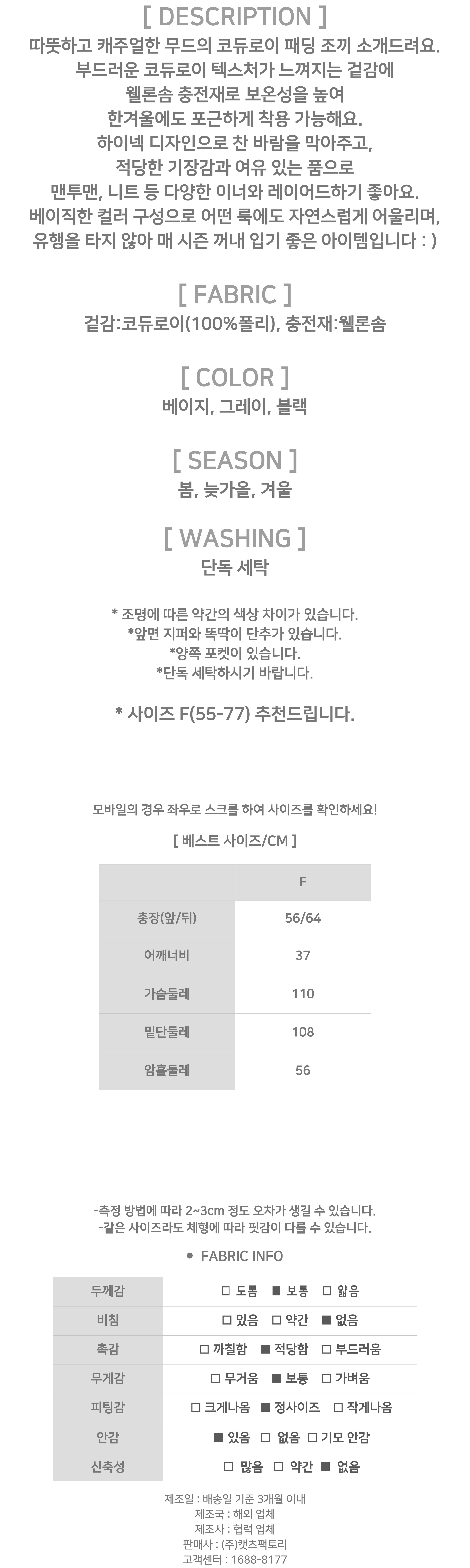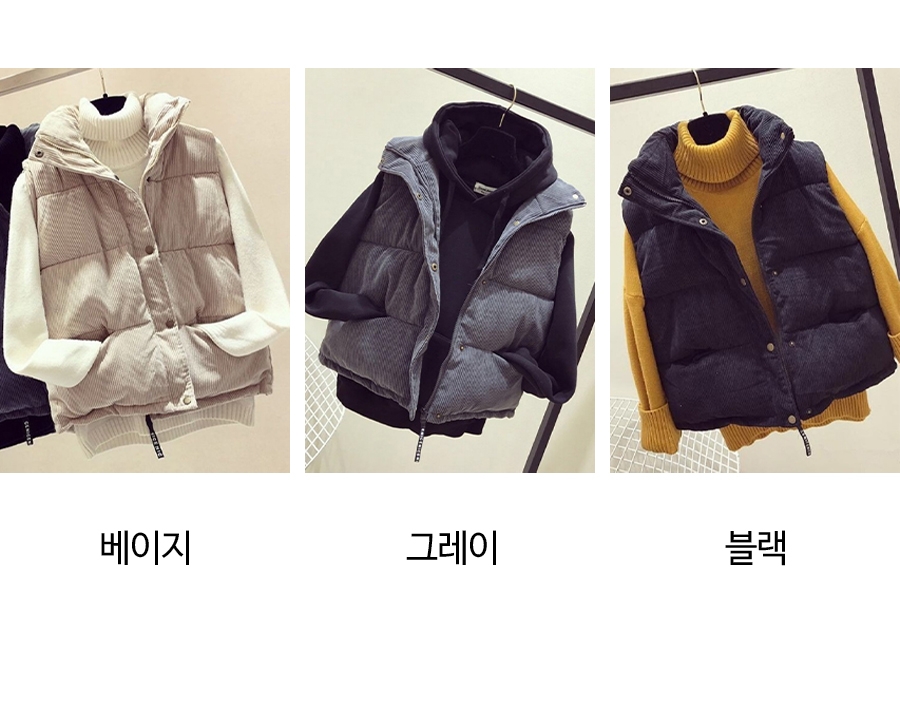 180767 ◈[당일발송]★수요특가 자정마감 50%★코듀로이 웰론 하이넥 패딩 조끼 35980